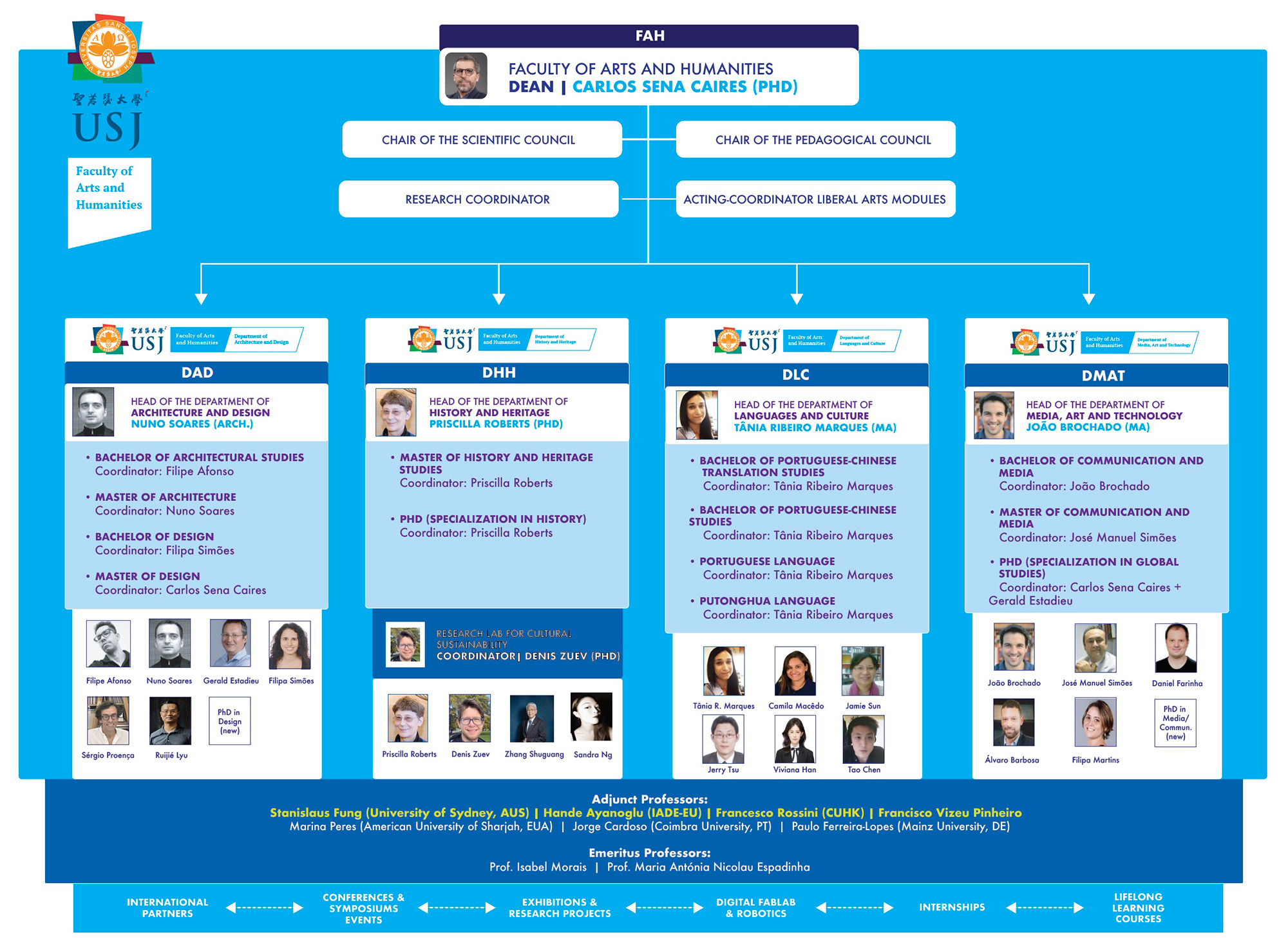 The Faculty of Arts and Humanities (FAH) offers a rich multicultural, and exciting environment for students to engage at the intersection of Arts, Humanities and Technology, addressing the great human challenges of our times. FAH offers degrees in four key areas of study: Media Arts and Technology; Architecture and Design; History and Heritage; Languages and Culture. Having these disciplines under the same Faculty provides a unique multidisciplinary environment in which students have access to exceptional educational opportunities and develop a sense of ethics and integrity as a whole-person who can think rigorously, critically and creatively. Above all, our students learn to value culture, human engagement and collaboration, which allows them to go beyond proficiency and become a master of their discipline.