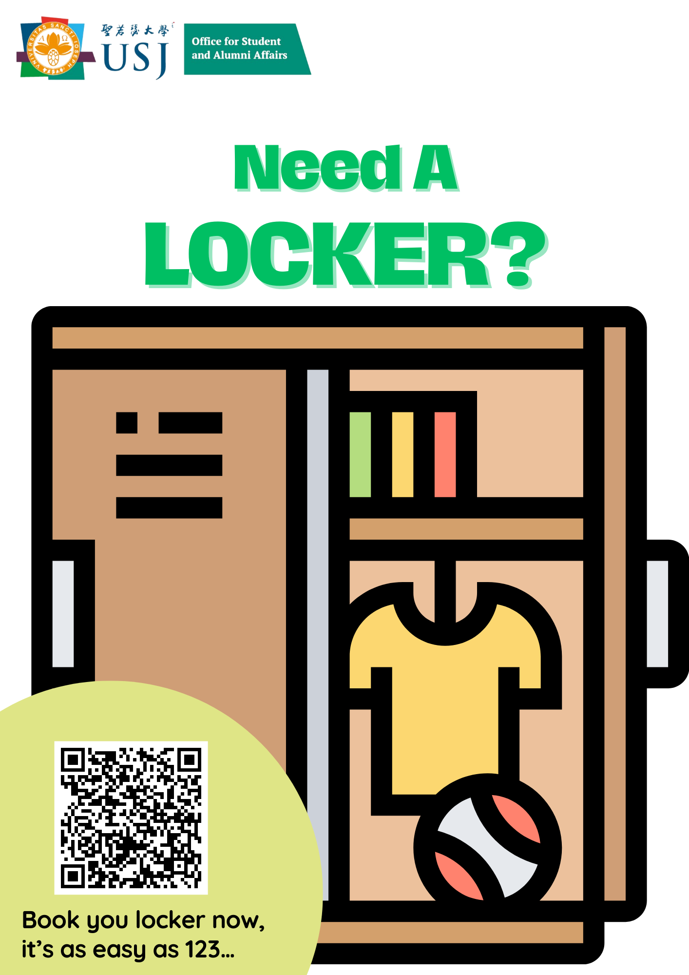USJ Locker RentalRental Fee (per Academic Year) Enquiry: 8592-5654 |