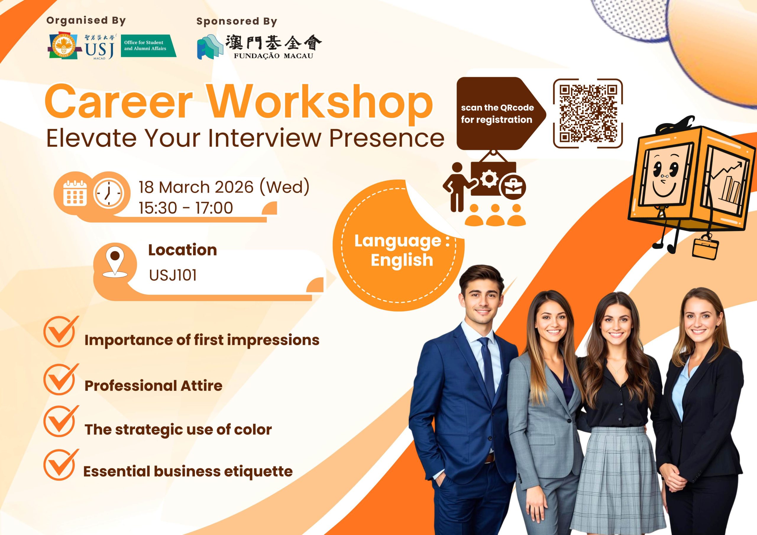 Career Workshop: Elevate Your Interview Presence Date: 18 Mar 2026 (Wed) |