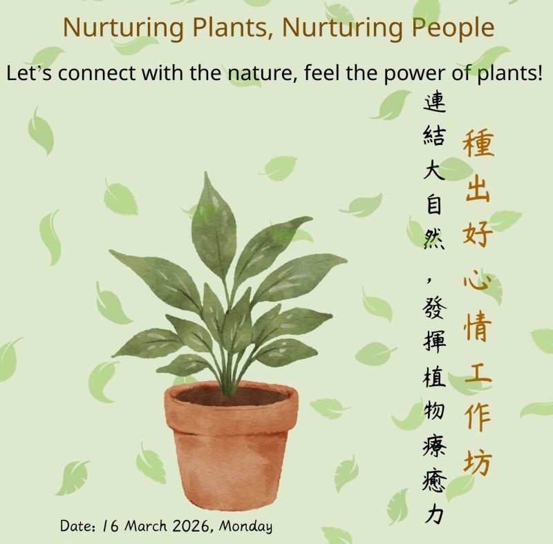 “Nurturing Plants, Nurturing People” Horticultural Therapy Workshop Date: 16 March 2026 (Mon) Supported by the Education and Youth Development Bureau of the Macao Special Administrative Region |