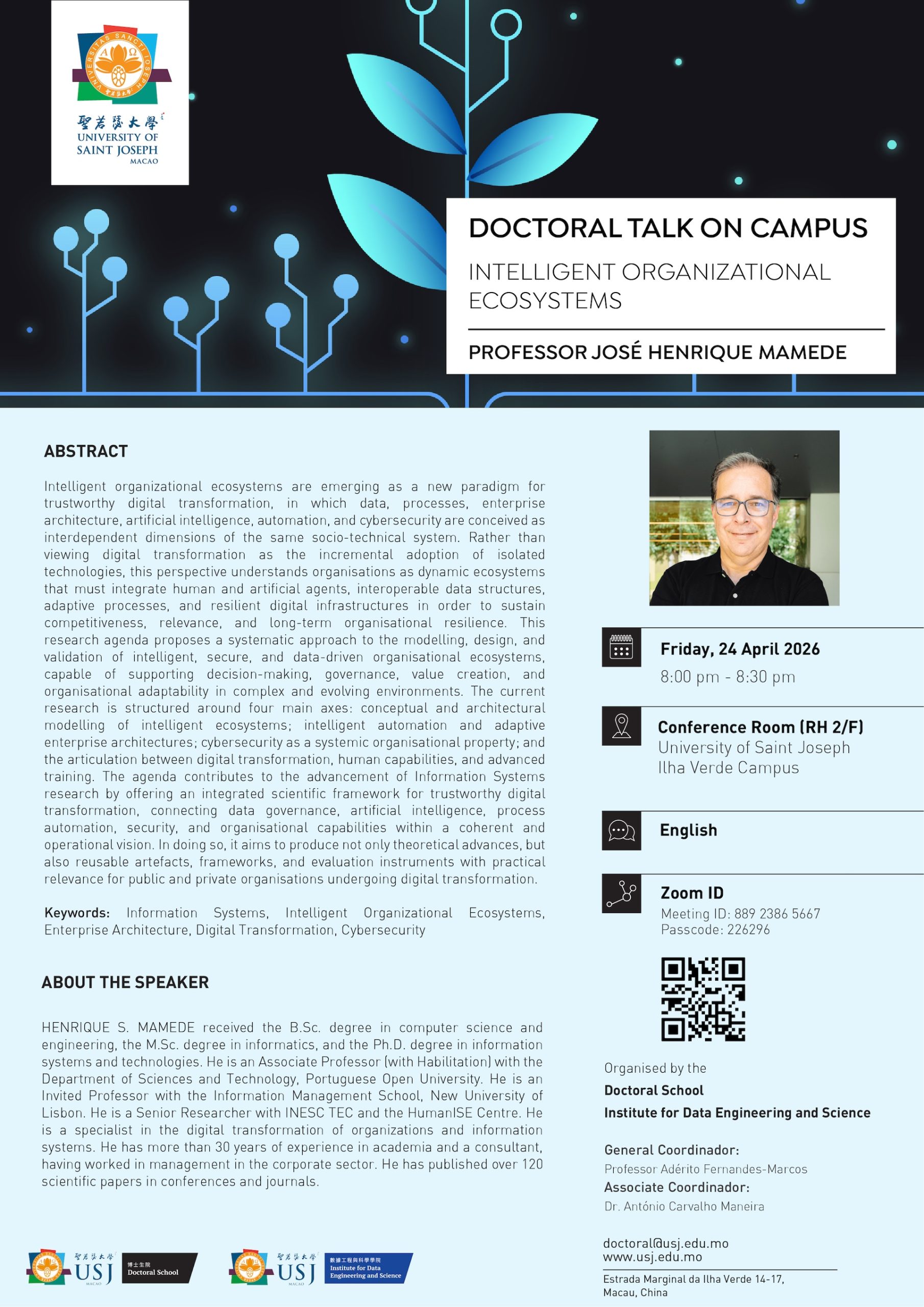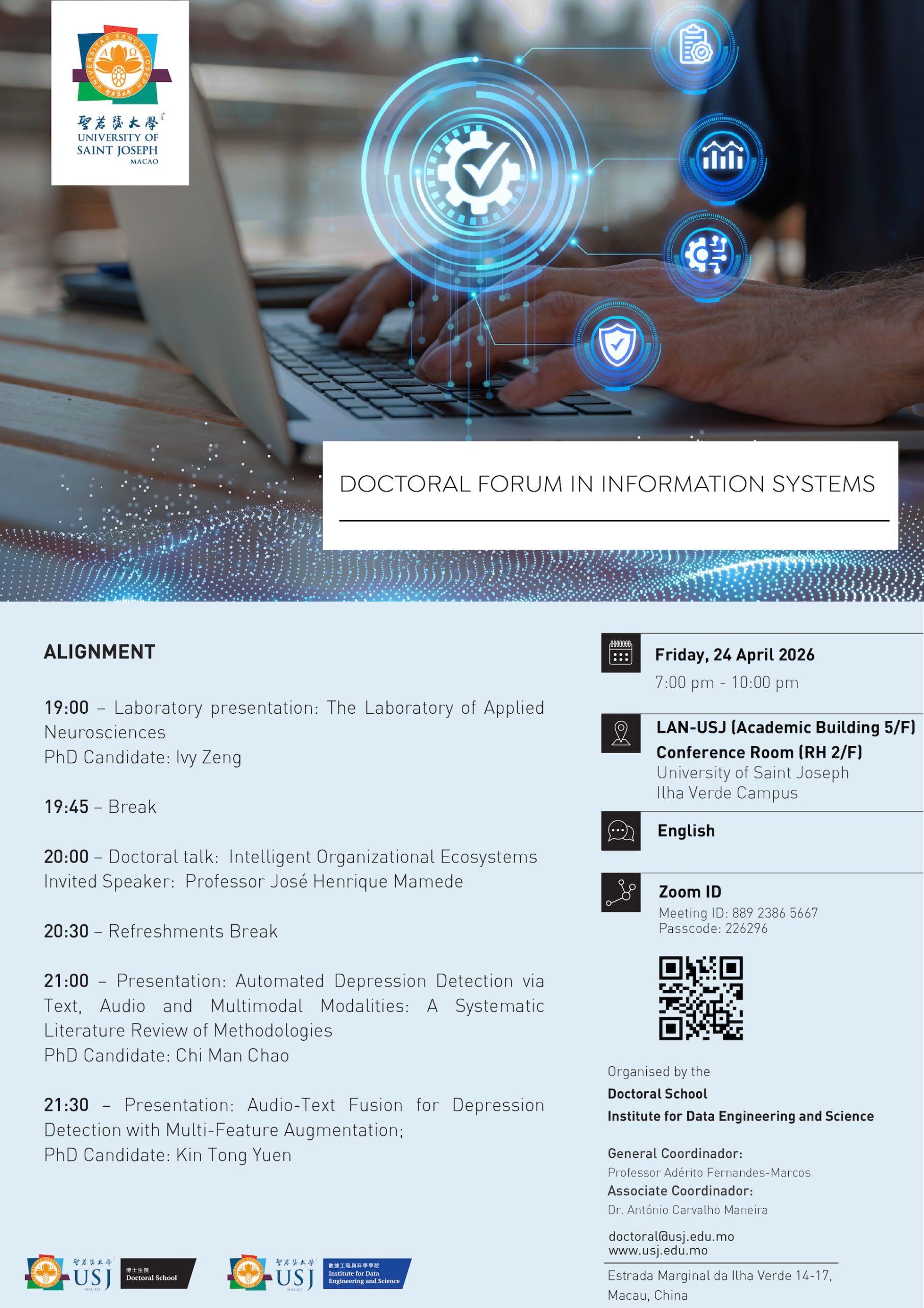 The USJ Doctoral School and the Institute for Data Engineering and Science are organising a Doctoral Forum in the study/research area of Information Systems on 24 April 2026.