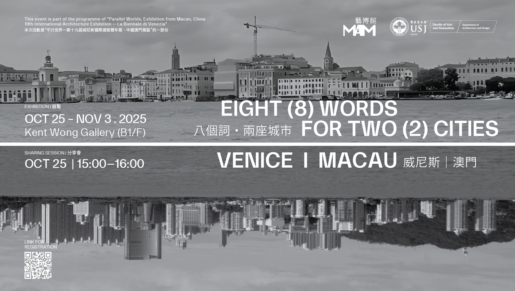 “eight (8) words for two (2) cities: Venice | Macau” exhibition shares the works of Master of Architecture students integrated in the “Parallel Worlds, Exhibition from Macao, China — 19th International Architecture Exhibition — La Biennale di Venezia” programme.