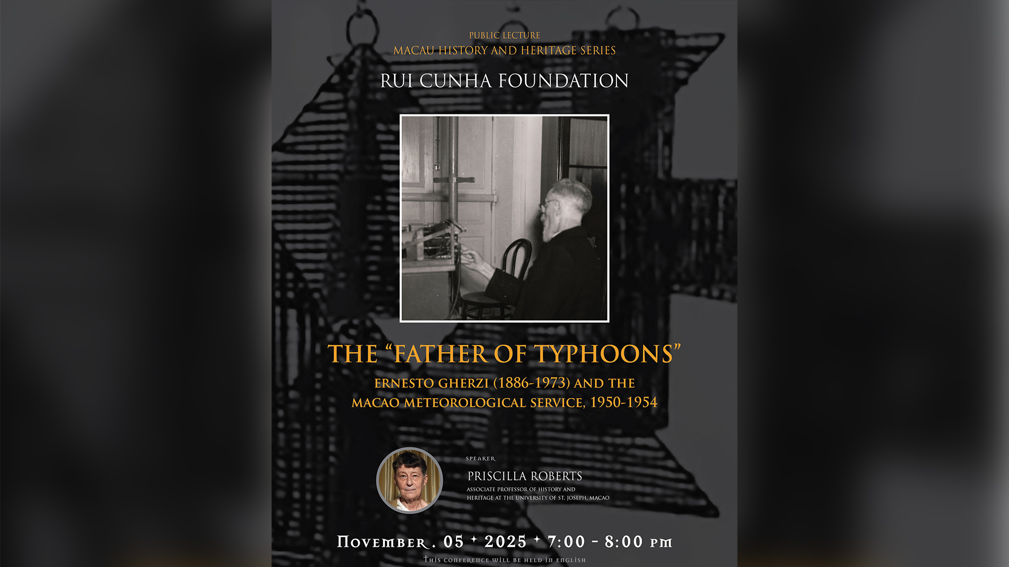 The History & Heritage Public Lecture | The “Father of Typhoons” Ernesto Gherzi (1886-1973) and the Macao Meteorological Service, 1950-1954 will take place on Wednesday, 5 November, from 7PM – 8PM, at Rui Cunha Foundation.