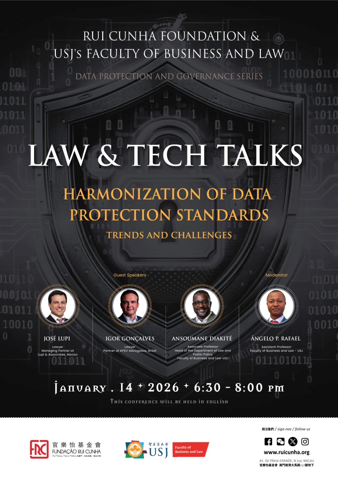 In this era of rapid digital transformation, understanding how personal information is collected, used, safeguarded, and transferred is of high importance both for private and public sector organizations. This talk series, hosted by the Faculty of Business and Law (USJ) and the Rui-Cunha Foundation, brings together leading scholars, practitioners, and policymakers to present their perspectives on emerging issues pertaining to data privacy, protection, and governance across different jurisdictions.