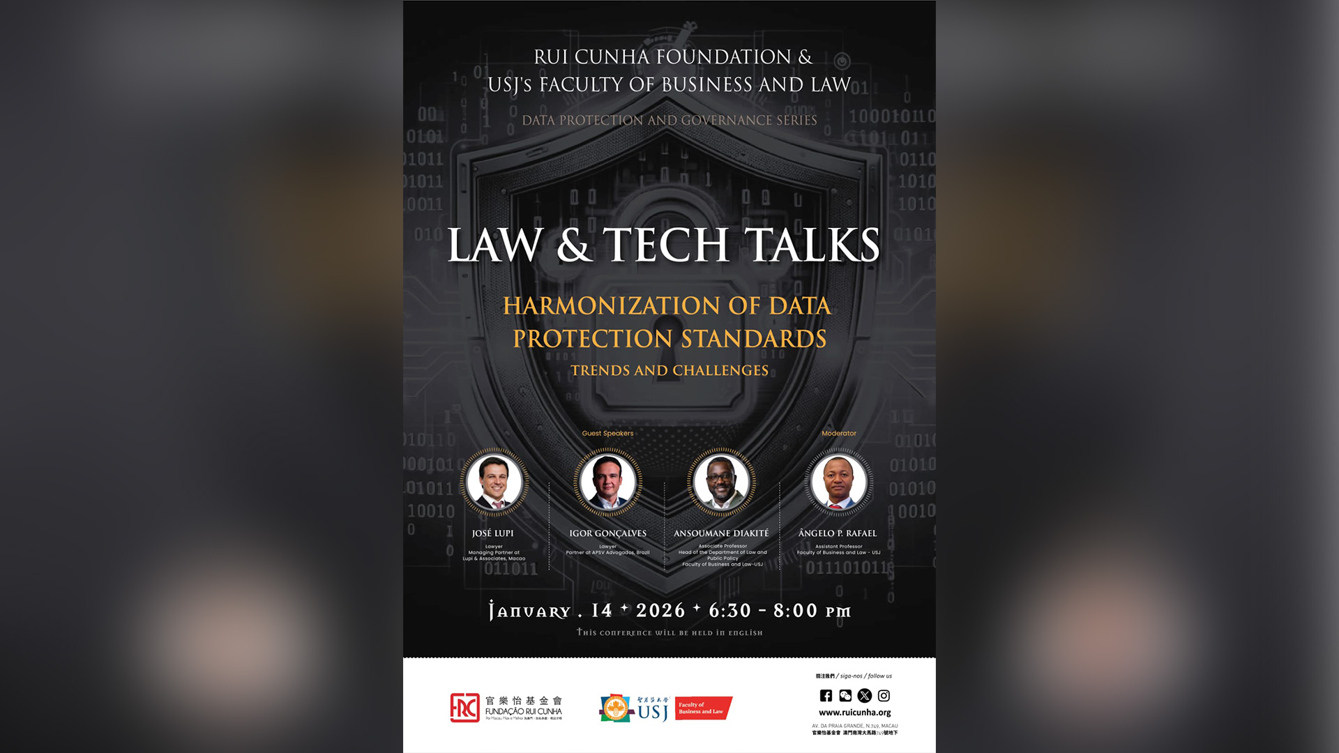 The Law & Tech Talks | Data Protection and Governance Series: “Harmonization of Data Protection Standards: Trends and Challenges” will take place on Wednesday, 14 January, from 6:30PM – 8PM, at Rui Cunha Foundation.