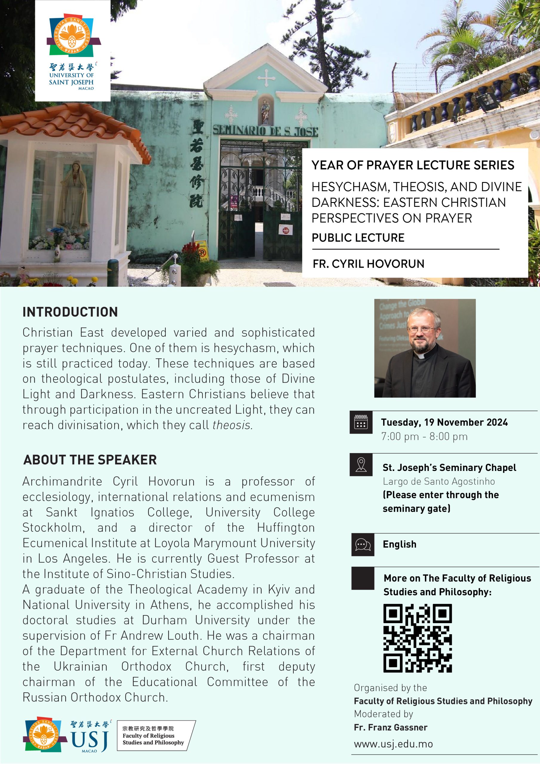 The Year of Prayer Lecture Series “Hesychasm, Theosis, and Divine Darkness: Eastern Christian Perspectives on Prayer”, will take place on November 19 in the St. Joseph’s Seminary Chapel.