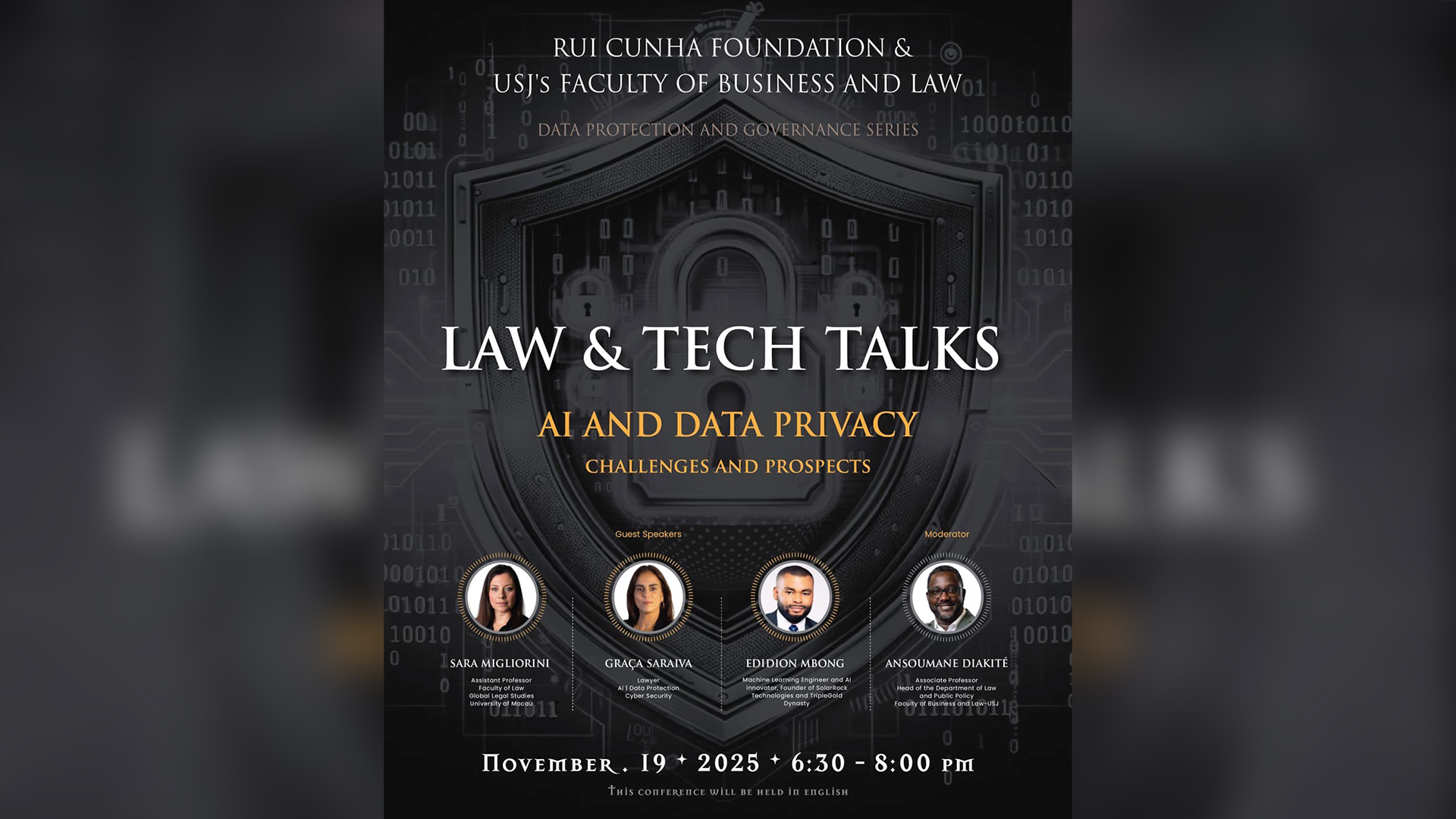 The Law & Tech Talks | Data Protection and Governance Series: “AI Data Privacy Challenges and Prospects” will take place on Wednesday, 19 November, from 6:30PM – 8PM, at Rui Cunha Foundation.