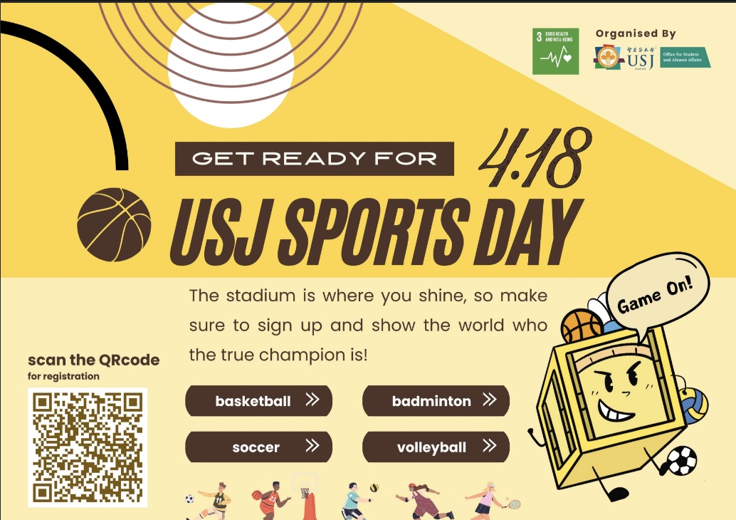 On 18 April 2026, the Office for Student and Alumni Affairs (OSAA) organised the USJ Sports Day 2026. The event featured four sports: football, basketball, volleyball, and badminton, attracting active participation from numerous teams and athletes.