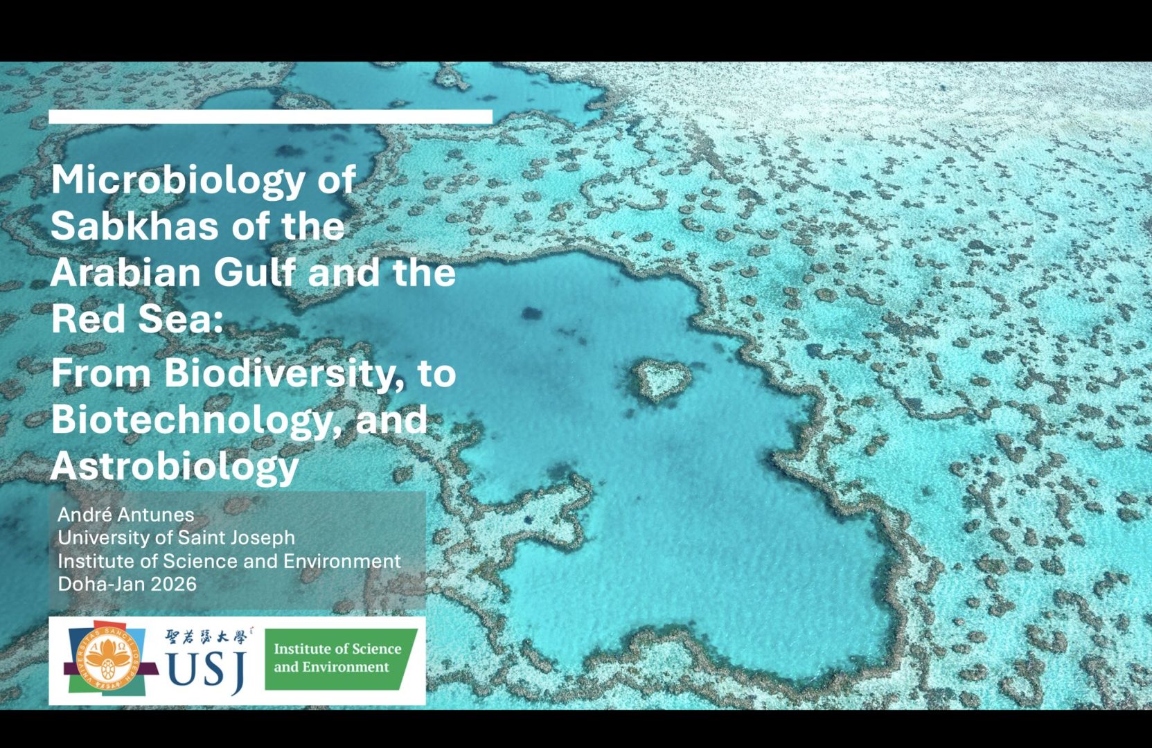 As part of this new collaboration with the Middle Eastern institution, Prof. André Antunes has also participated as invited speaker in the 2nd International Conference on Sabkha in Qatar, in Doha, during his recent visit in late January. His presentation, titled “Microbiology of Sabkhas of the Arabian Gulf and the Red Sea: From Biodiversity, to Biotechnology, and Astrobiology” will contribute to an upcoming white paper on the preservation of these unique, and threatened coastal ecosystems in Qatar.
