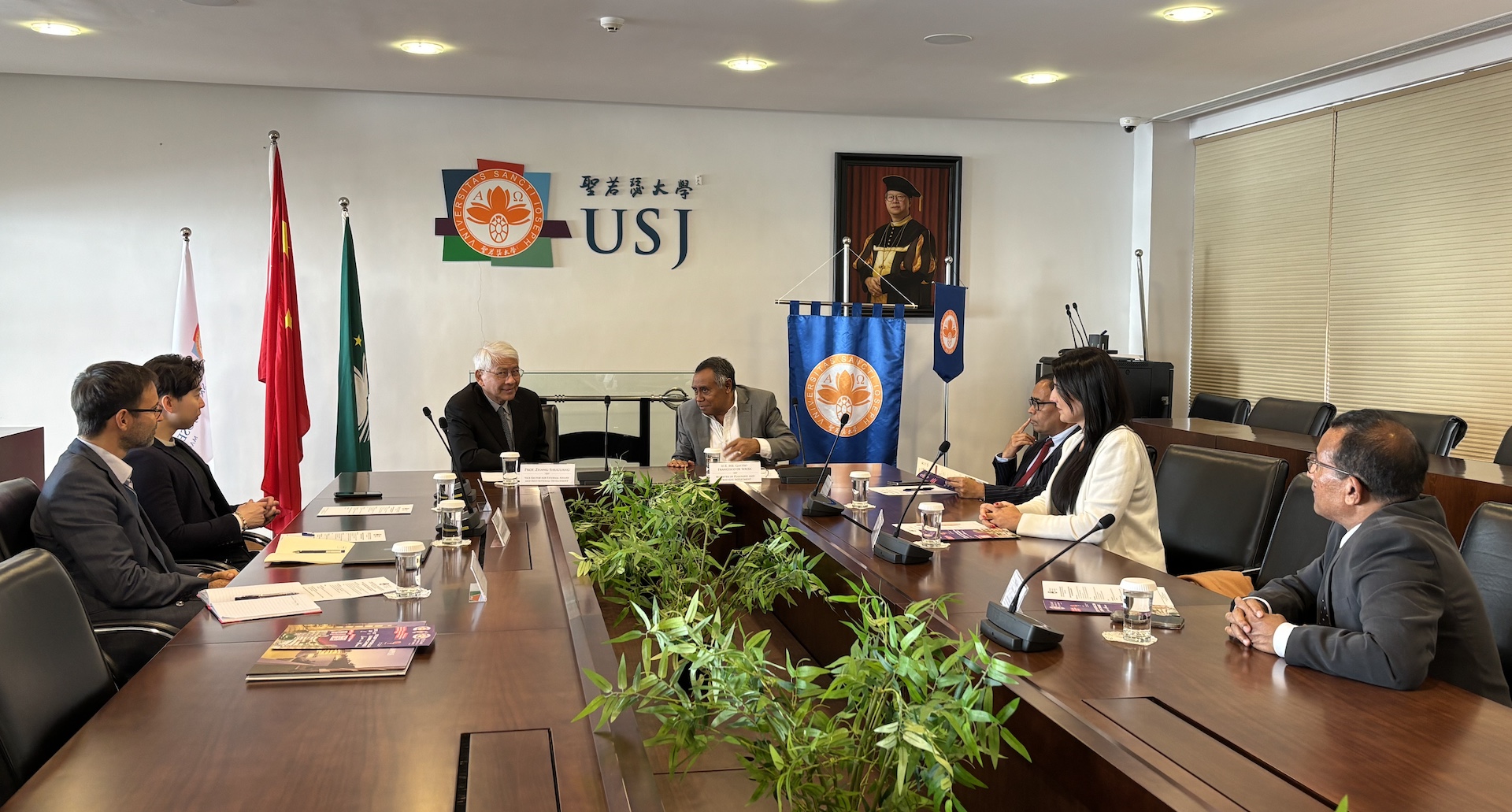 The delegation was cordially greeted by USJ’s Vice-Rector for External Affairs and Institutional Development, Prof. Zhang Shuguang; together with the Dean of the Faculty of Health Sciences, Prof. Jacky Ho; Prof. António Maneira of the Doctoral School; and Ms Anabela Wong from the Secretariat and Public Relations Office.
