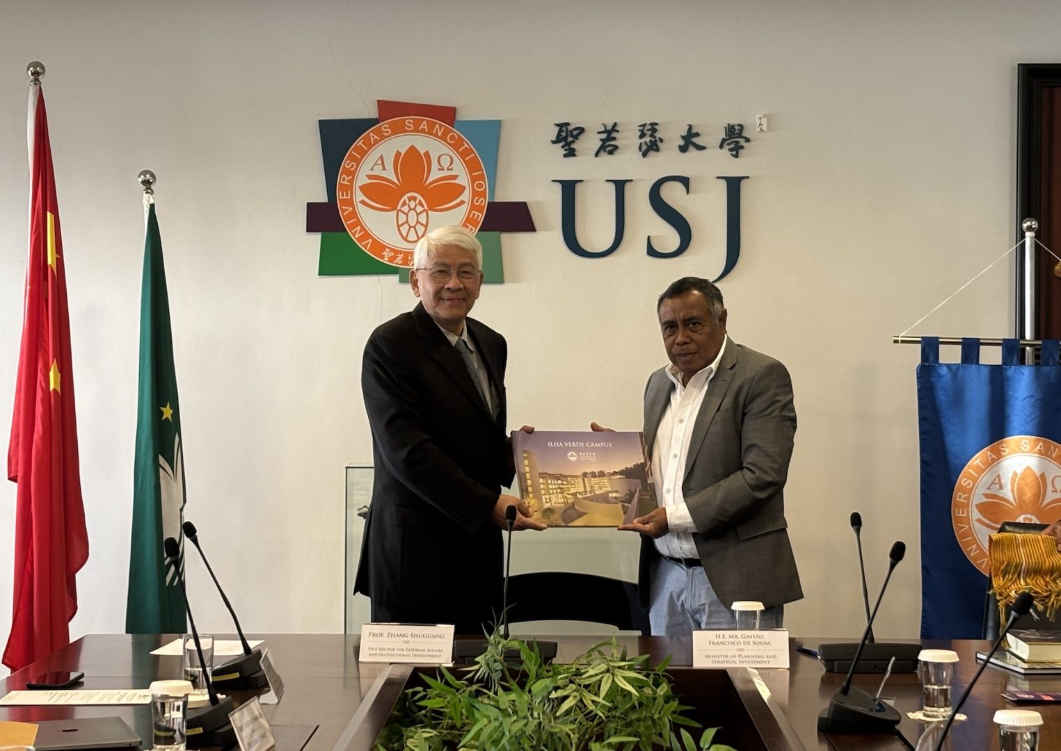 On 28 November 2025, a delegation from the Ministry of Planning and Strategic Investment of Timor East paid a courtesy visit to the University of Saint Joseph (USJ) Macao. The delegation included H.E. Mr. Gastão Francisco de Sousa; Principal Advisor to the Minister, Mr. Júlio Tomás Pinto; Legal Advisor, Ms. Maria Roussal; and Delegate of East Timor to the Forum for Economic and Trade Cooperation Between China and Portuguese-Speaking Countries (Forum Macau), Mr. António Ramos da Silva.
