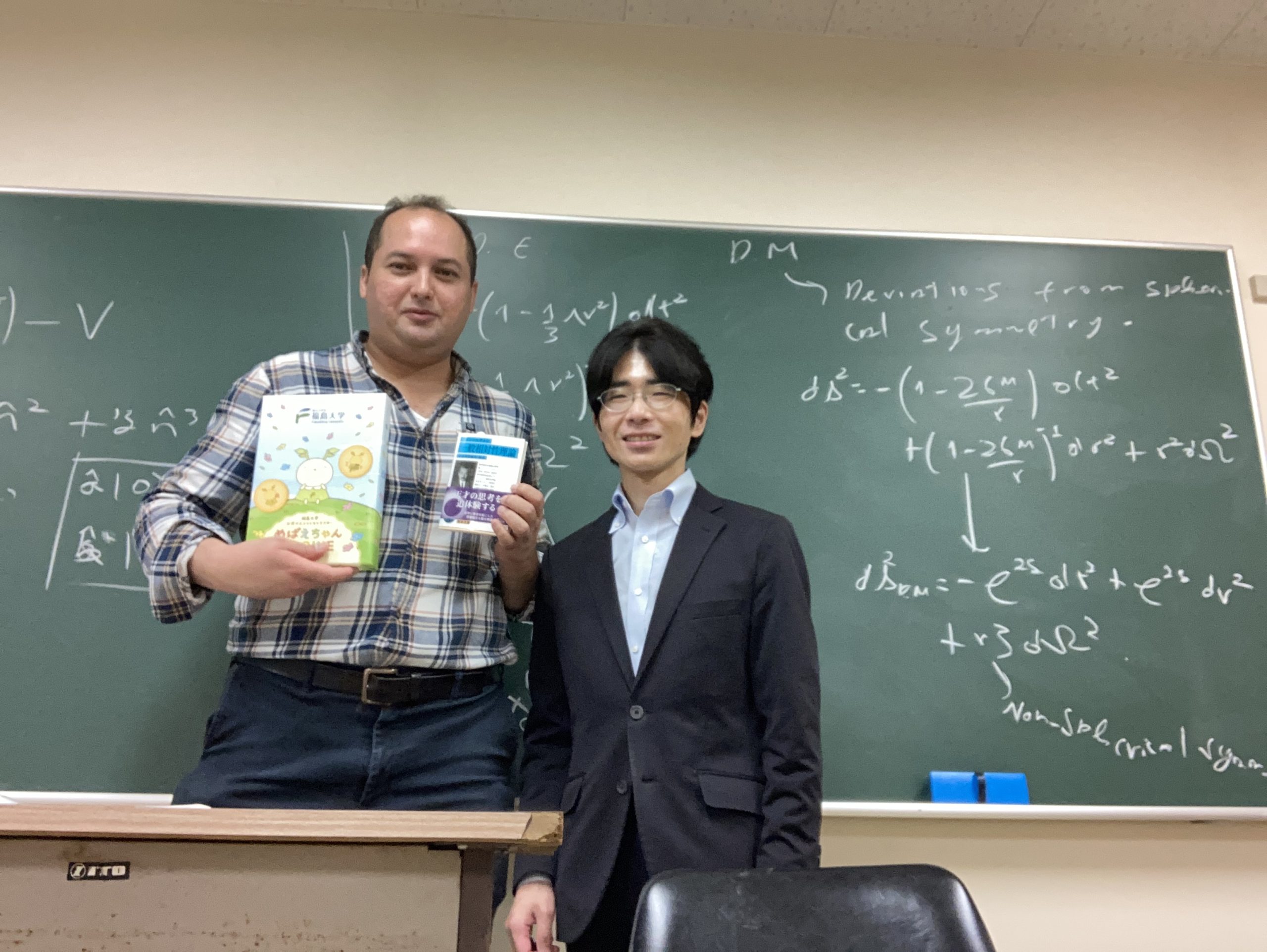 The visit was hosted by Professor Kazuharu Bamba who shared the distinction of the Best Reviewer Award for the Journal Universe in 2018 with Dr. Arraut. As a token of appreciation, Dr. Arraut received gifts during his visit, including the first Japanese translation of Einstein’s original 1916 article, completed by the Professor Hideo Kodama, one of Japan’s leading cosmologists and Dr. Arraut’s supervisor during his tenure at the KEK High Energy Accelerator in 2013.