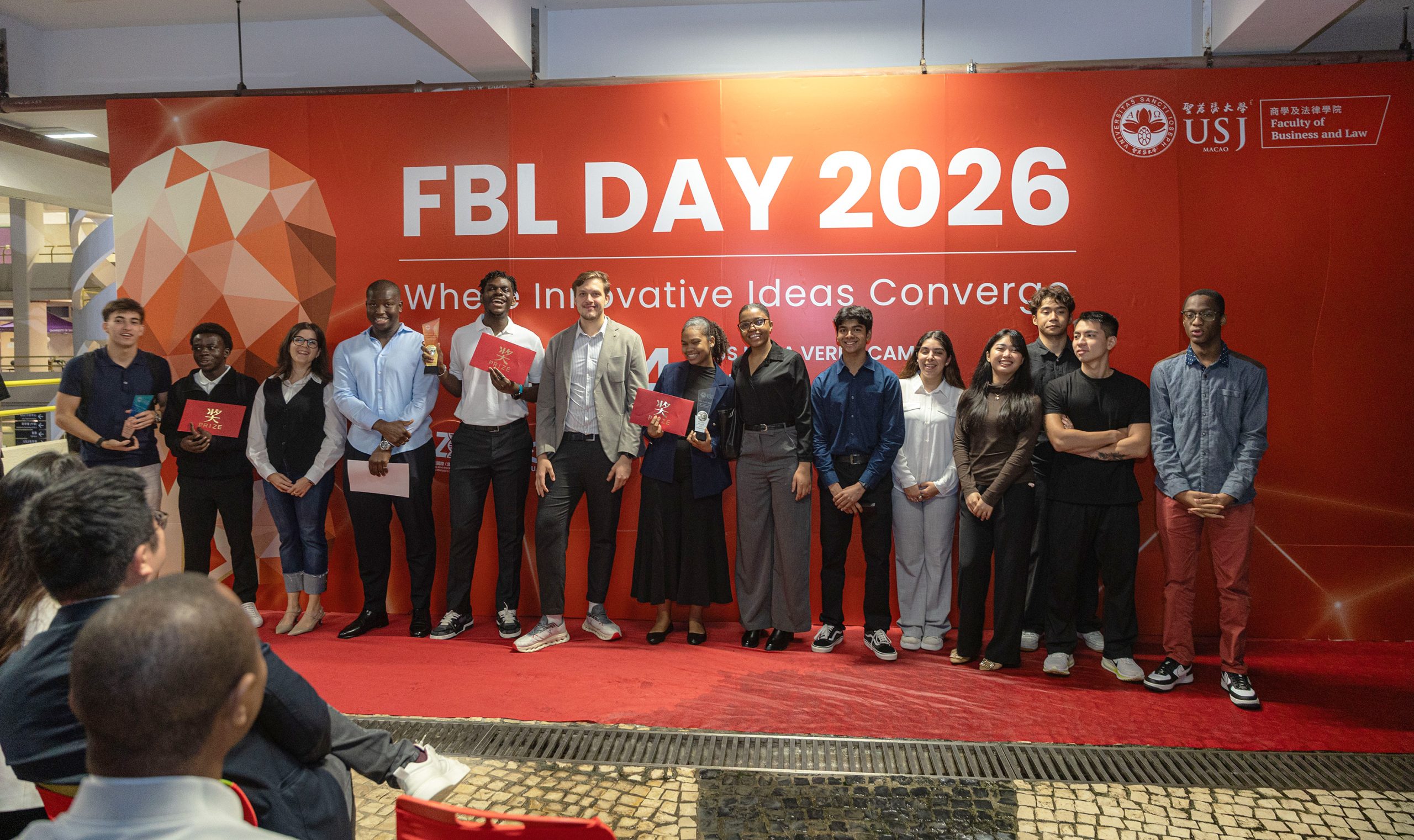 The University of Saint Joseph (USJ) Ilha Verde Campus was transformed into a vibrant corridor of innovation on 24 April as the Faculty of Business and Law (FBL) hosted ‘FBL Day 2026: Where Innovative Ideas Converge. The interactive event served as a ‘pre-incubator’ platform, successfully bridging the gap between classroom theory and real-world commercial viability for the next generation of Macao’s entrepreneurs. Organised by a dedicated team of Year-4 Bachelor of Business Administration (BBA) students under the guidance of Prof. Florence Lei, Coordinator for the Sustainable Business Lab, the event welcomed over 100 attendees, including alumni, industry leaders, and investors.
