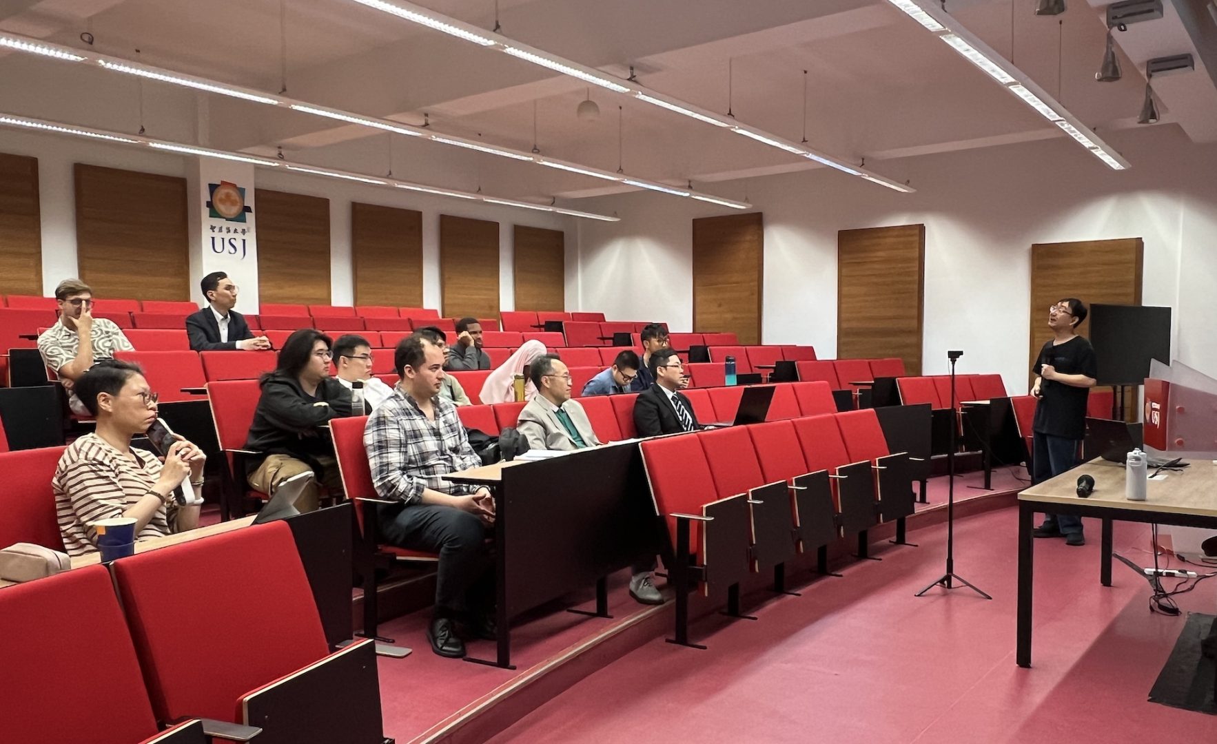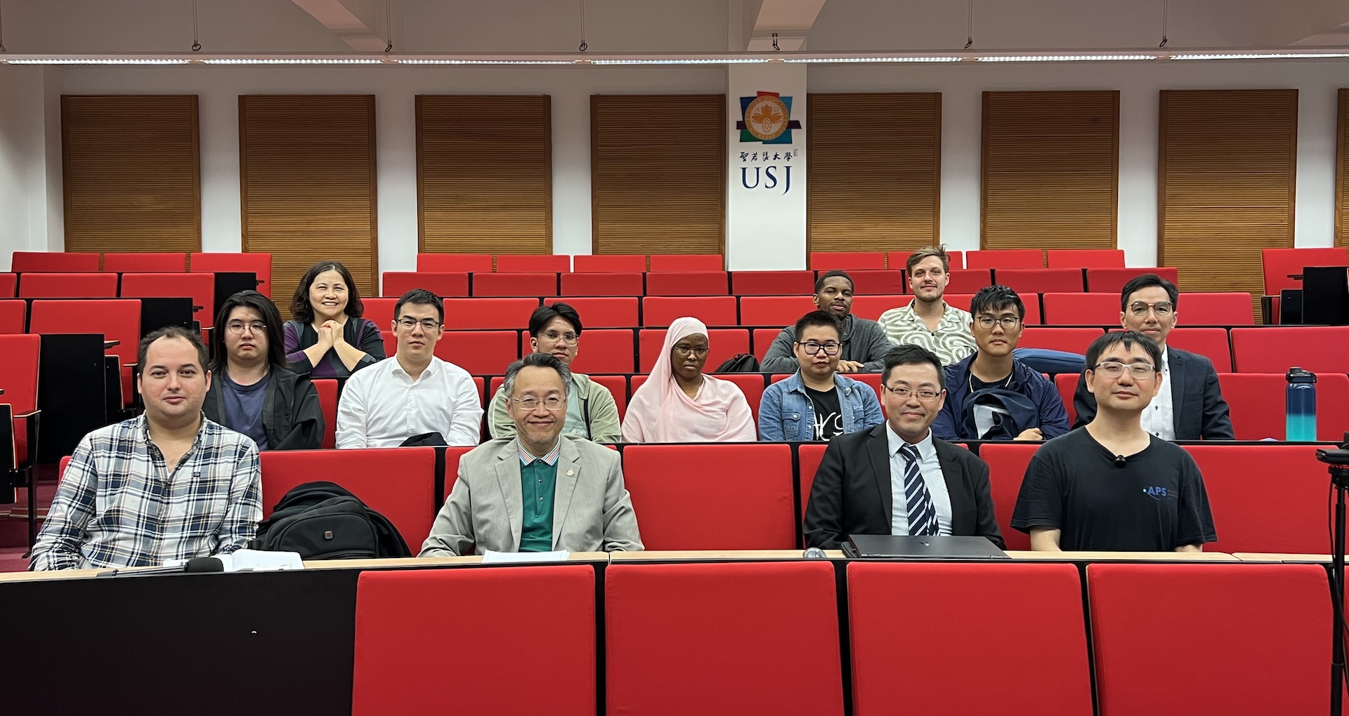The Institute for Data Engineering and Science (IDEAS) welcomed Prof. Sunny Wang from the Department of Physics at City University of Hong Kong to deliver a seminar on Basic Quantum Mechanics on 19 March at the Don Bosco Auditorium in Ilha Verde Campus. The event served as the final complement to the lifelong learning course “Introduction to Quantum Communication and Technologies” offered by the USJ Executive Training and Lifelong Learning Office (ETLLO) and taught by Prof. Ivan Arraut.