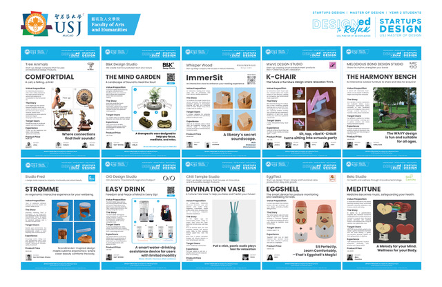 USJ presented an exhibition of ten design products developed by master’s students from the Faculty of Arts and Humanities (FAH). Guided by Prof. Carlos Sena Caires, Dean of FAH, and refined for business feasibility by Prof. Alessandro Lampo, Head of the Department at the Faculty of Business and Law (FBL), the projects demonstrated the strength of cross-faculty collaboration.
