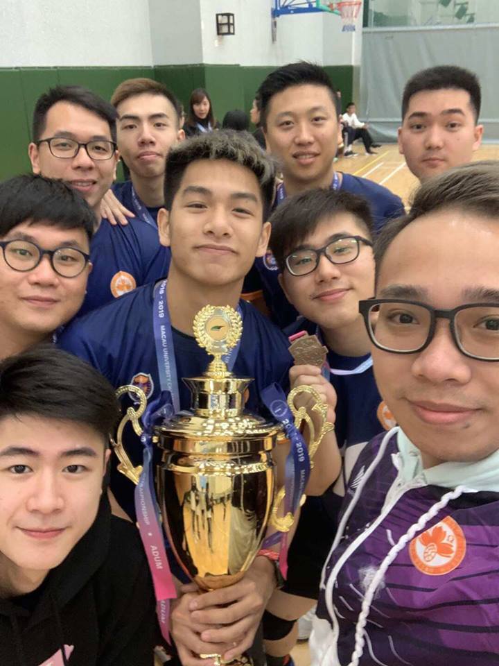 USJ’s Male Volleyball Team players include: Chu Ka Hou (BCM), Cheong Iat Chong (BSW), Ho Rogerio (BCM), Wong Kin Wa (BCM), Ting Ka Hei (BSW), Cheong Ka Wang (BDSP), Wong Cheok In (BSW), Cheang Chong Hang (BPY), Ho Wai Fong (BED), Choi Kuok Leong (BPC), Jian Valerio Lin (International Exchange Student from Politecnico di Milano).
