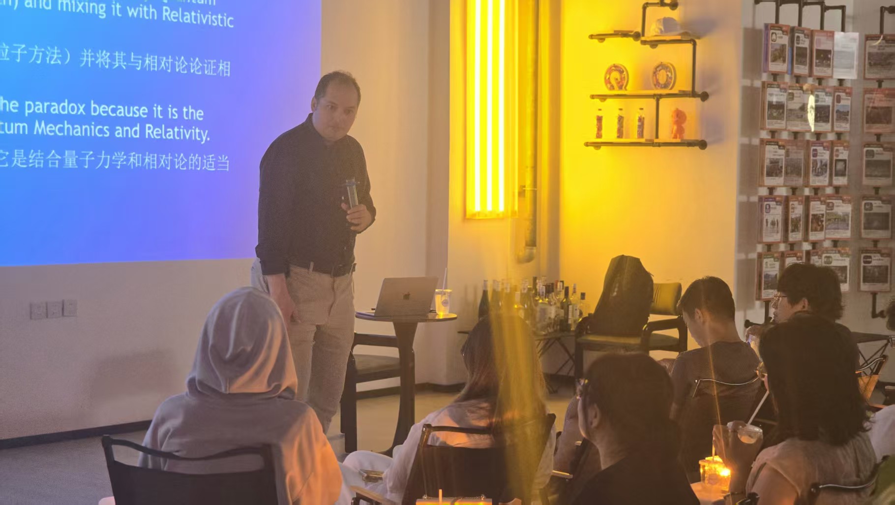 The second presentation, Prof. Arraut gave an informal talk at Social Clink, where he explored the paradoxes of Quantum Mechanics and the crucial role of Quantum Field Theory in addressing these challenges. Attendees included students and faculty from institutions, such as the University of Hong Kong.