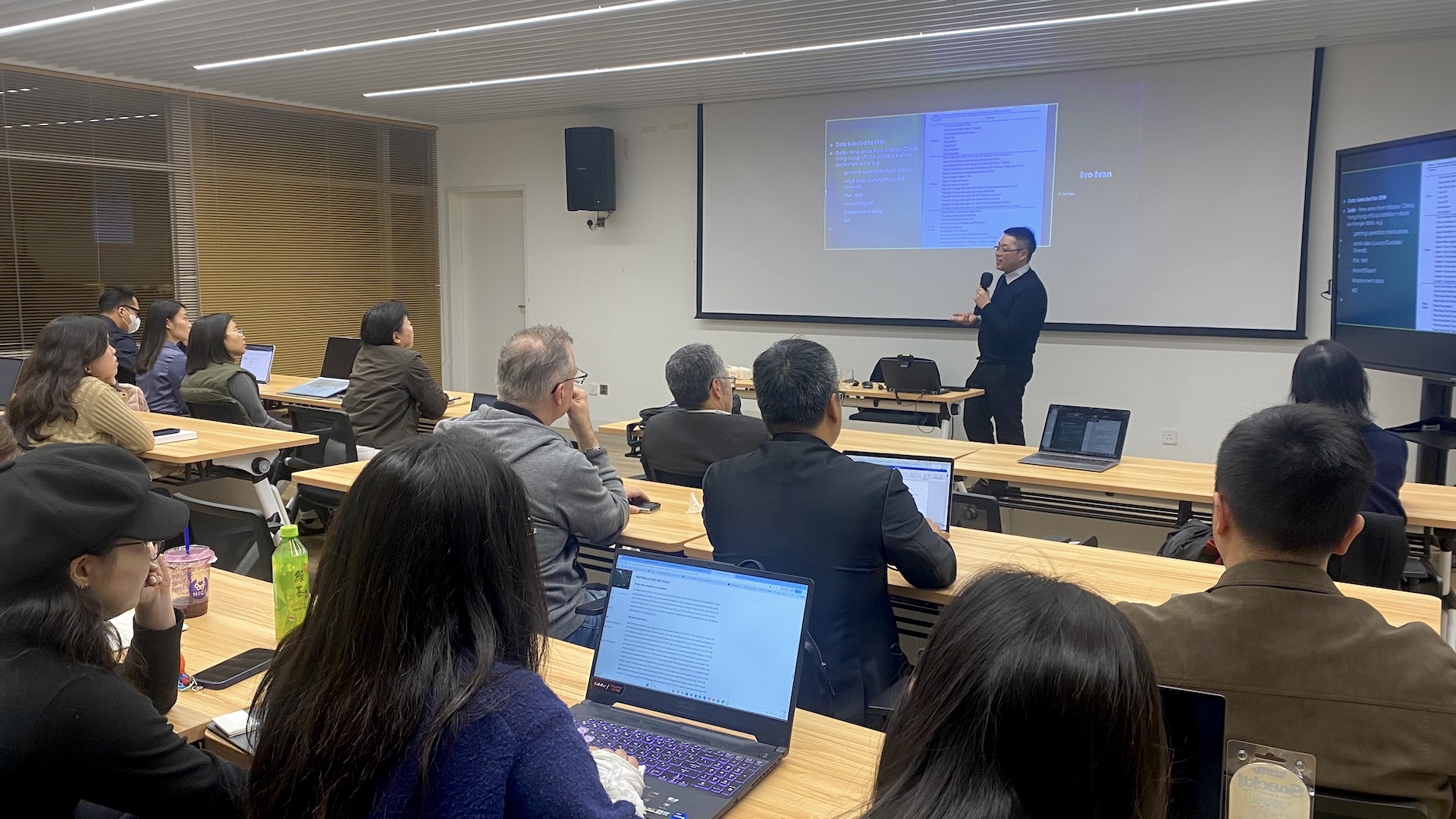 The second invited speaker, Dr Manuel Chau, a recent Doctor of Business Administration (DBA) graduate, then presented on “Optimising Short-Term Forecasts of Macau’s Gross Gaming Revenue and GDP Using Dynamic Factor Models with Machine Learning”. Dr. Chau’s project developed a robust short-term forecasting framework for Macau’s economy, evaluating econometric Dynamic Factor Models alongside various machine learning algorithms to enhance accuracy and identify leading indicators.