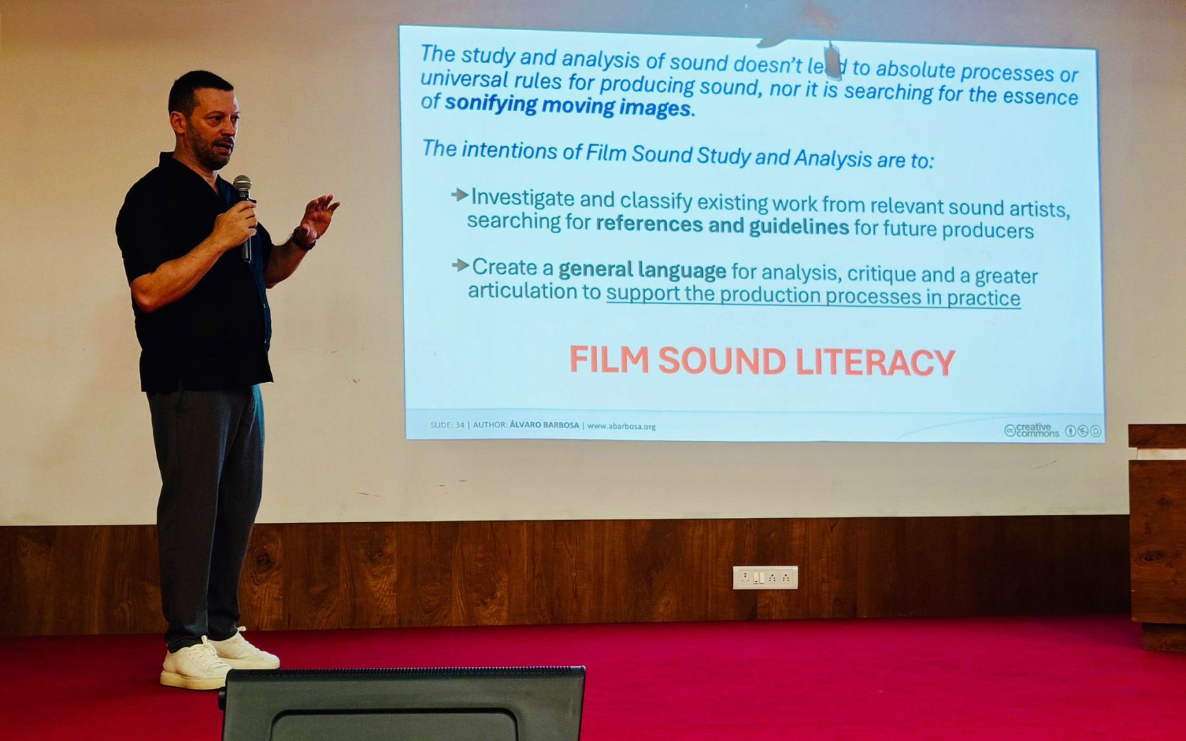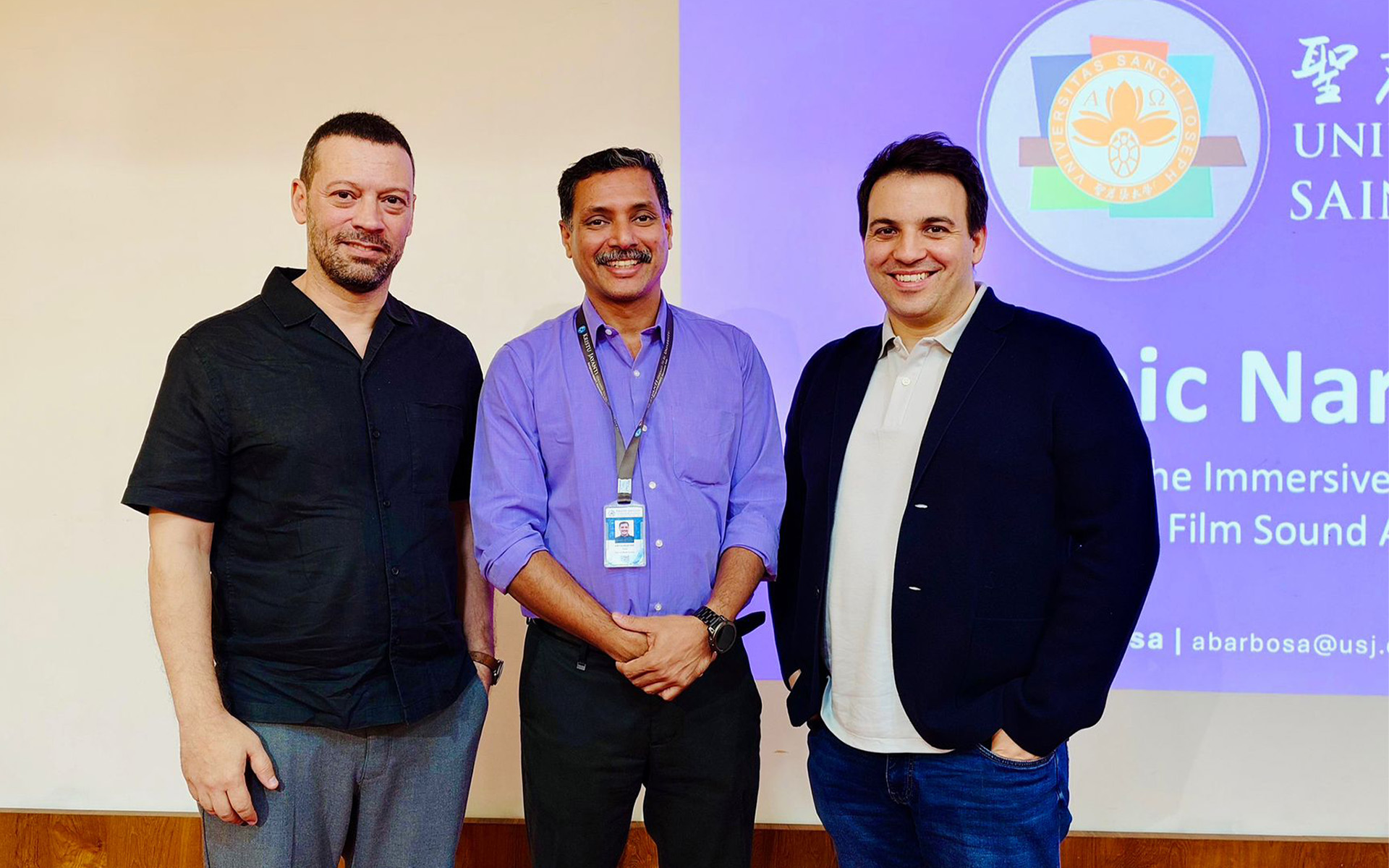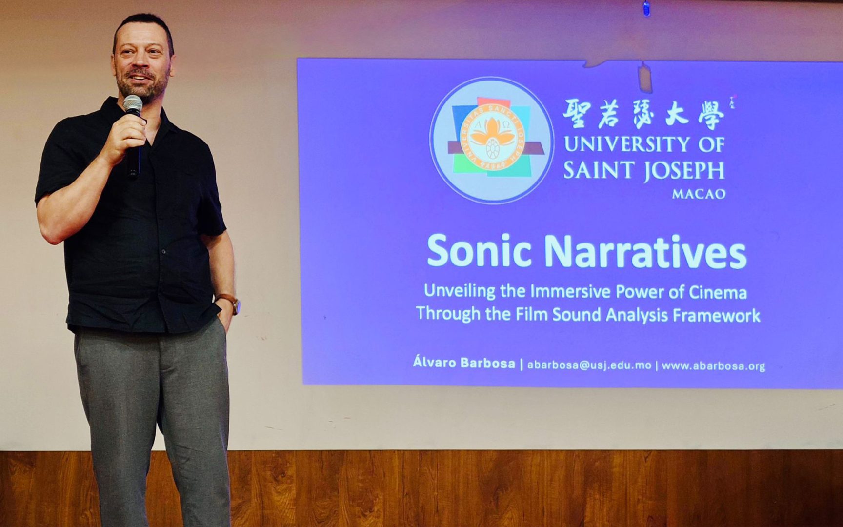 Professor Álvaro Barbosa, USJ’s Vice-Rector for Internationalisation and Academic Affairs, served on the Conference’s Advisory Committee, and delivered a keynote titled “Sonic Narratives: Unveiling the Immersive Power of Cinema Through the Film Sound Analysis Framework” as part of Plenary Session 2. In his presentation, he introduced the Film Sound Analysis Framework (FSAF) , a systematic tool he developed to codify film sound as an audiovisual language. Drawing on theories from Michel Chion and Pierre Schaeffer, the framework reveals how sound elements – such as diegetic voices and non-diegetic music – construct meaning, foster immersion, and influence emotional engagement. Professor Barbosa demonstrated how the FSAF can empower creators to harness sound for authentic, cross-border storytelling.
