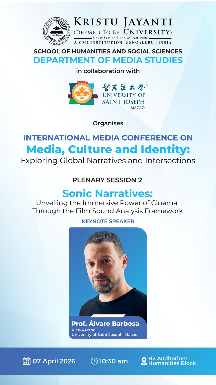 Vice-Rector Professor Álvaro Barbosa and Dr. João Leong Brochado delivered Keynotes in the International Media Conference on “Media, Culture and Identity: Exploring Global Narratives and Intersections” in Bengaluru, India, organised by Kristu Jayanti University in collaboration with USJ Macao.