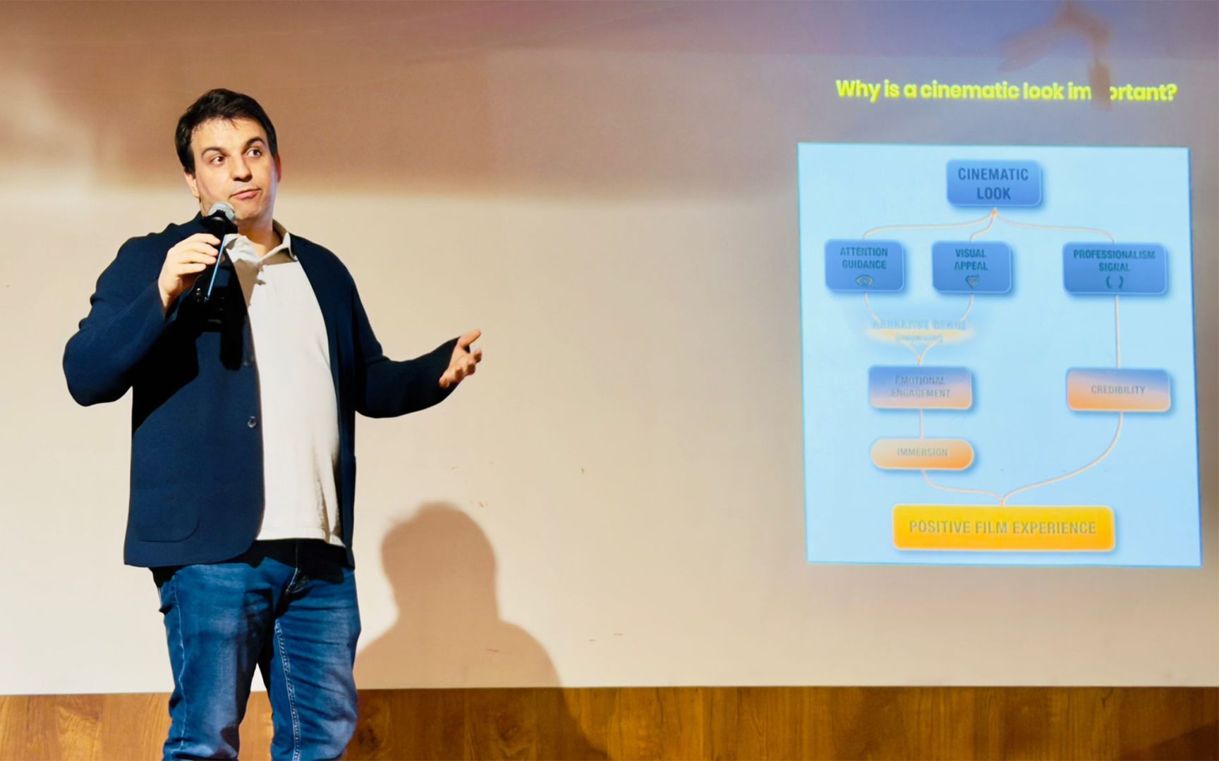 Dr. João Leong Brochado, Head of the Department of Media, Arts and Technology within USJ’s Faculty of Arts and Humanities, presented “An Analysis of Cinematography Elements Contributing to a Cinematic Look of a Narrative Digital Film” during Plenary Session 3. Drawing on a mixed-methods study involving 127 participants from 21 countries and interviews with 15 filmmakers, Dr Leong Brochado found that no single element guarantees a ‘cinematic look’. Rather, it emerges from the deliberate combination of multiple factors guided by narrative intention. He proposed a pyramid model and decision matrix to classify these elements, offering practical guidance for filmmakers and educators.