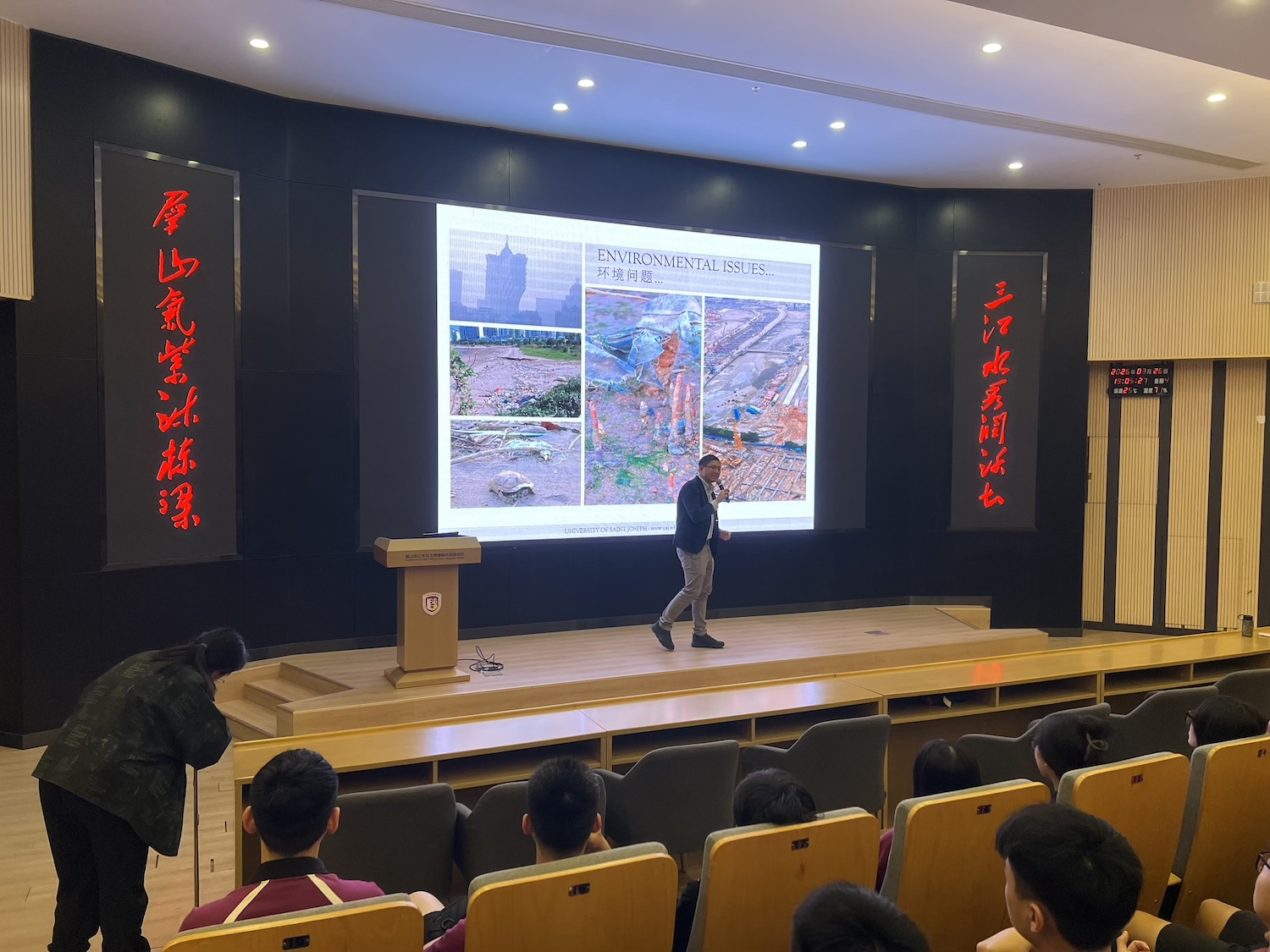 During the visit, Prof. Thomas also presented a seminar talk titled “Case Study of Macau: Implementation of 30.60 Dual Carbon Goals, ESG Management, and the United Nations Sustainable Development Goals” to a group of over 100 high school students in Foshan Beibo Dehan Foreign Languages School, who also expressed interest in applying to the Bachelor of Environmental Science and Bachelor of Biology and Biotechnology programmes offered at the USJ/ISE.