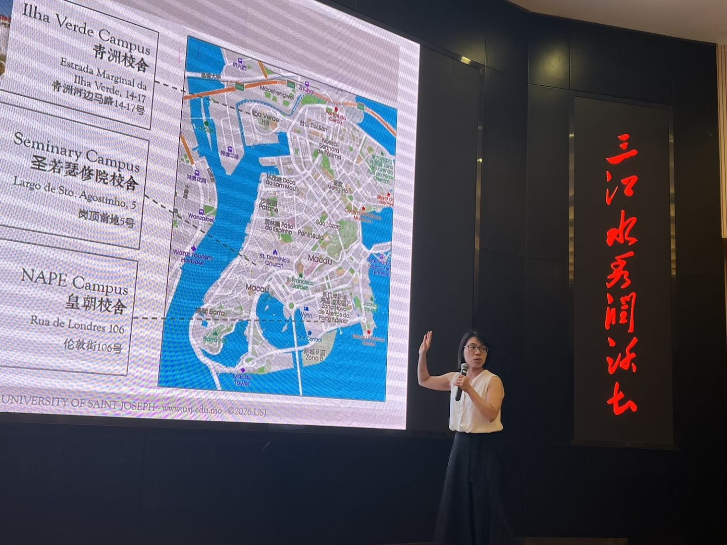 On March 26, 2026, representatives from the University of Saint Joseph (USJ), including Assistant Professor Thomas Lei from the Institute of Science and Environment (ISE) and Ms. Jenny Mok from the Domestic Student Recruitment Office (DSRO), visited Foshan Beibo Dehan Foreign Languages School for student recruitment talk.