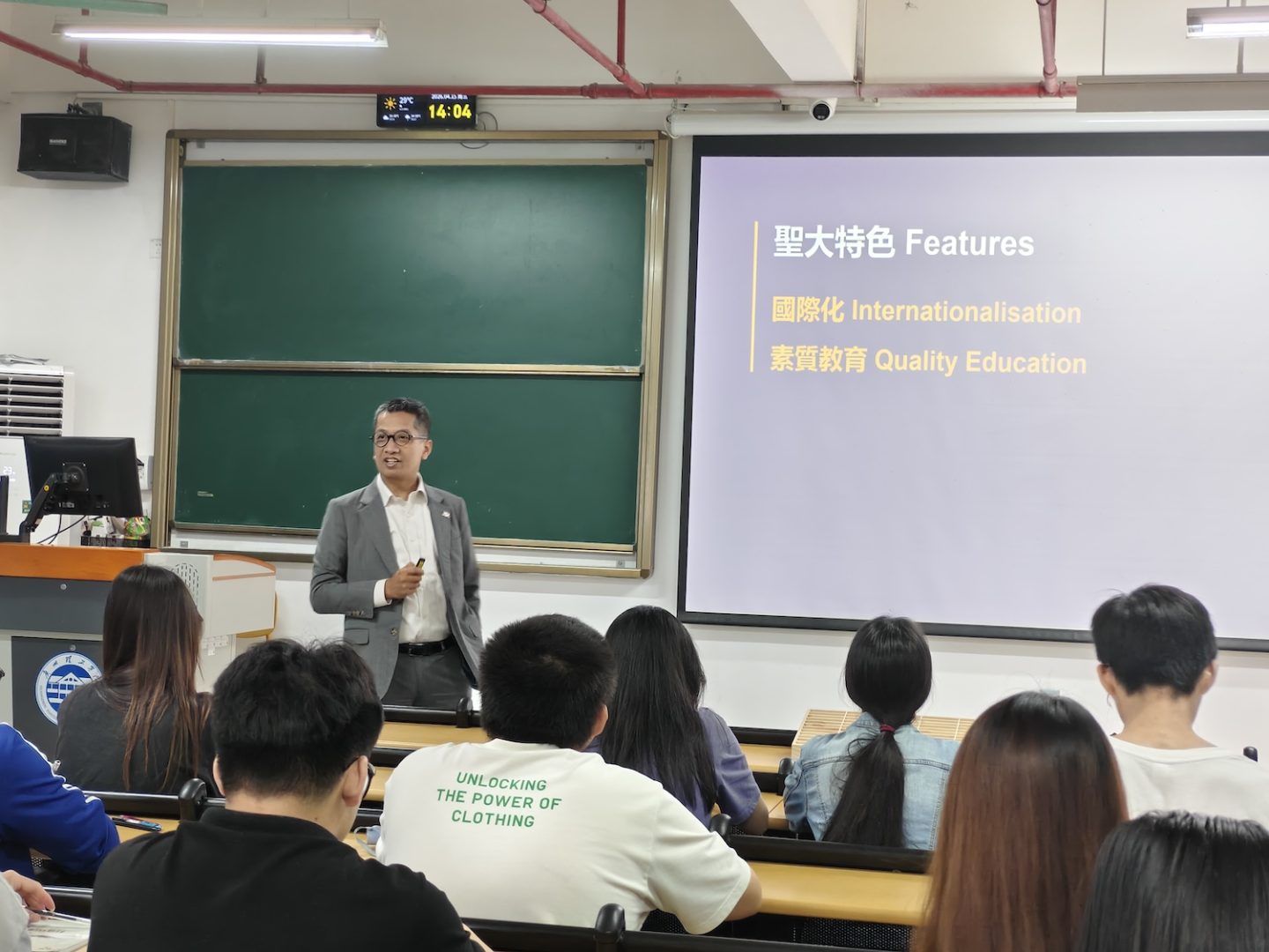 A promotional talk of the USJ postgraduate programme was presented by Head of DSRO Ben Lei to a group of over 20 Bachelor students at GZIST, who also expressed interest in applying to the USJ postgraduate programme.