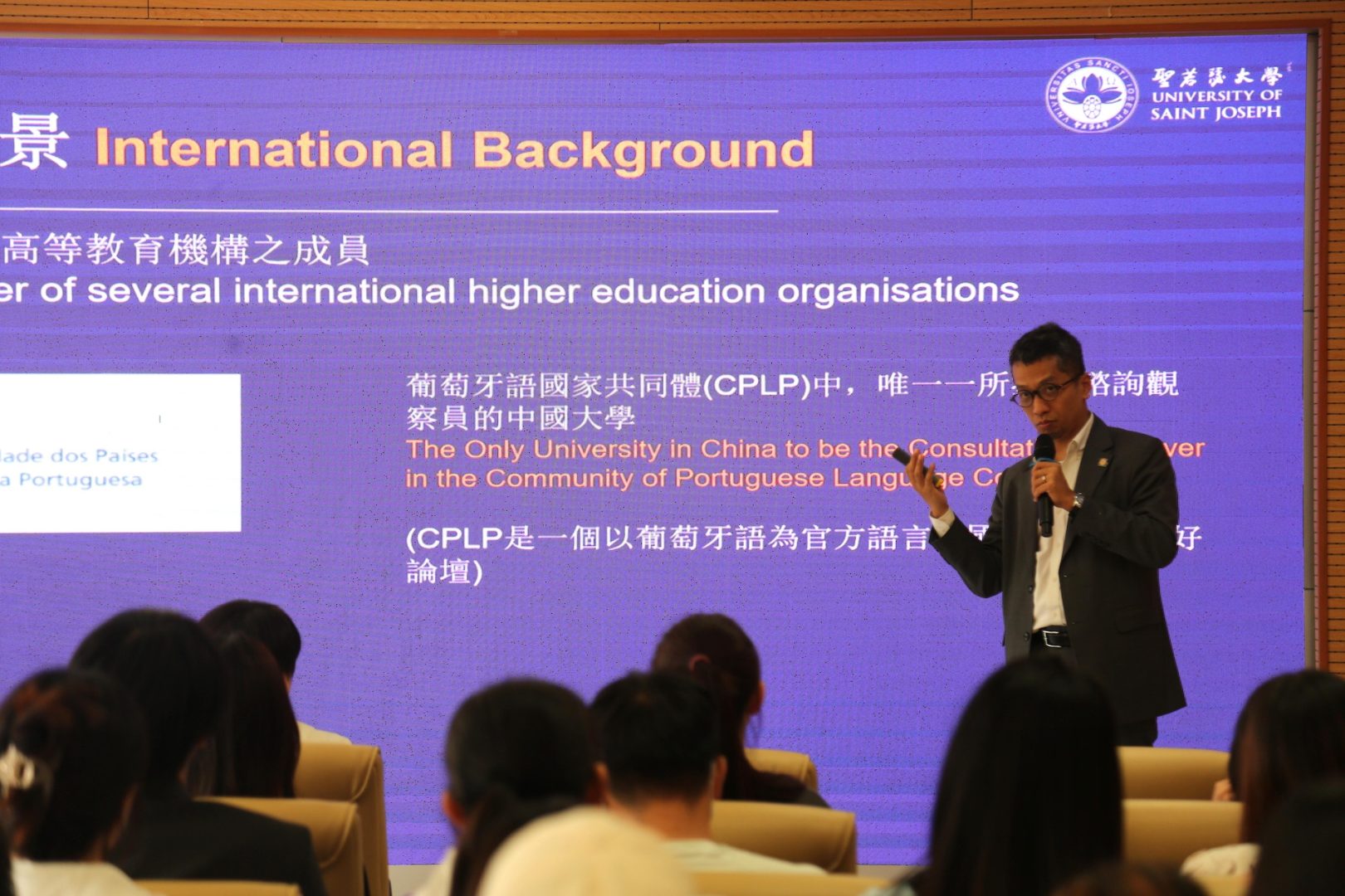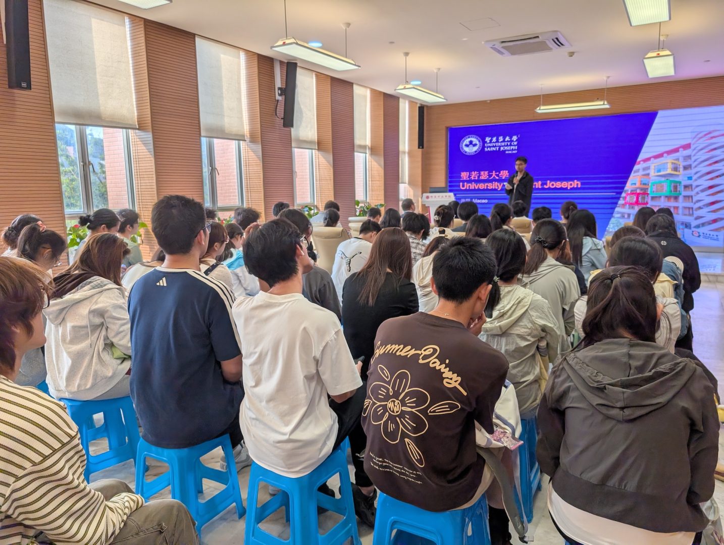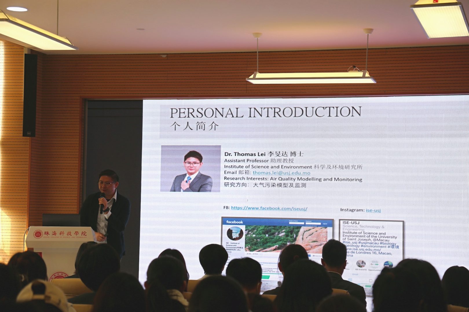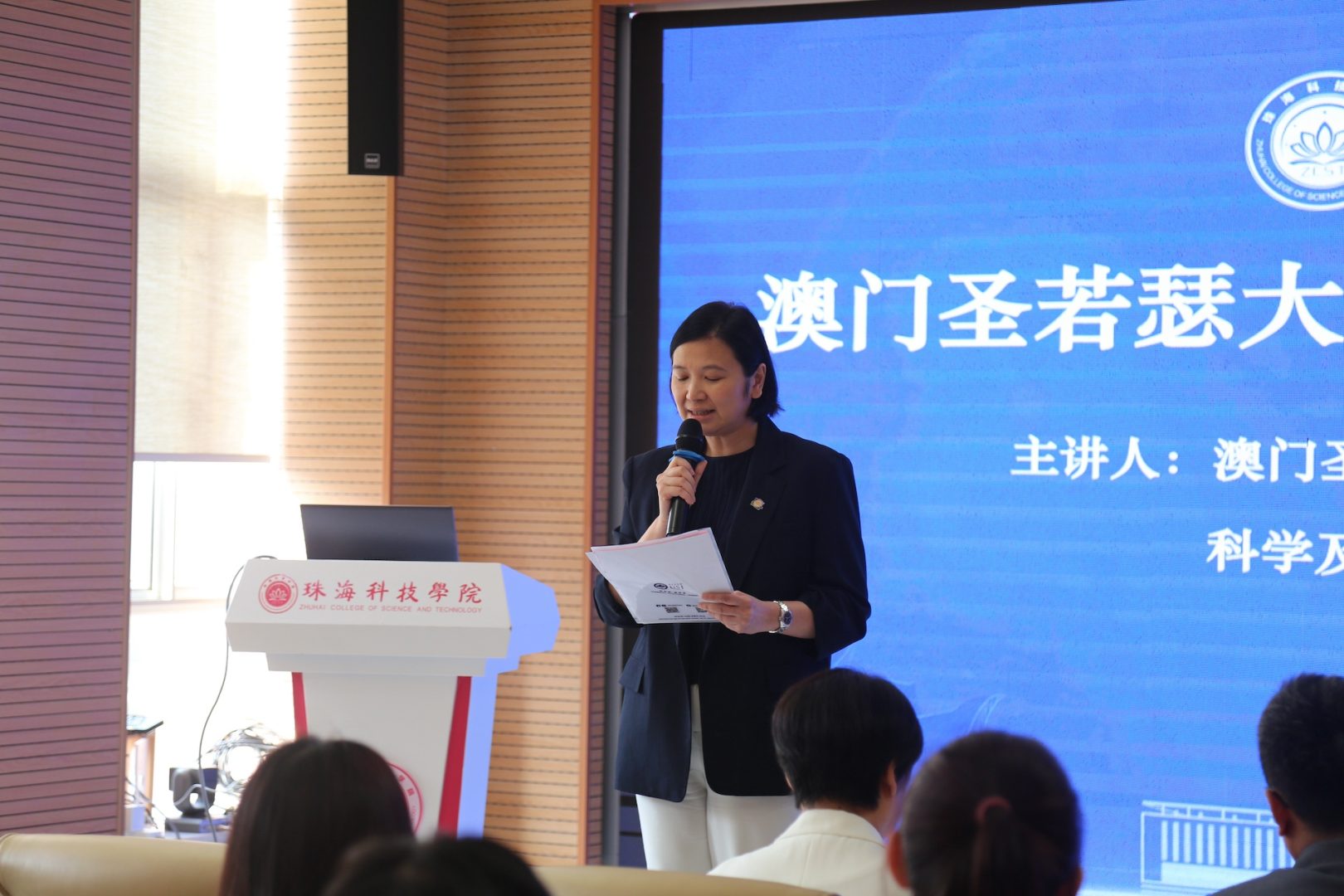 A promotional talk of the USJ postgraduate programme was presented by Vice-Rector Dr. Teresa Loong and Head of DSRO Ben Lei to a group of over 30 Bachelor students at ZCST, who also expressed interest in applying to the USJ postgraduate programme. In addition, Prof. Thomas Lei presented a seminar talk titled “Case Study of Macau: Implementation of 30.60 Dual Carbon Goals, ESG Management, and the United Nations Sustainable Development Goals”.