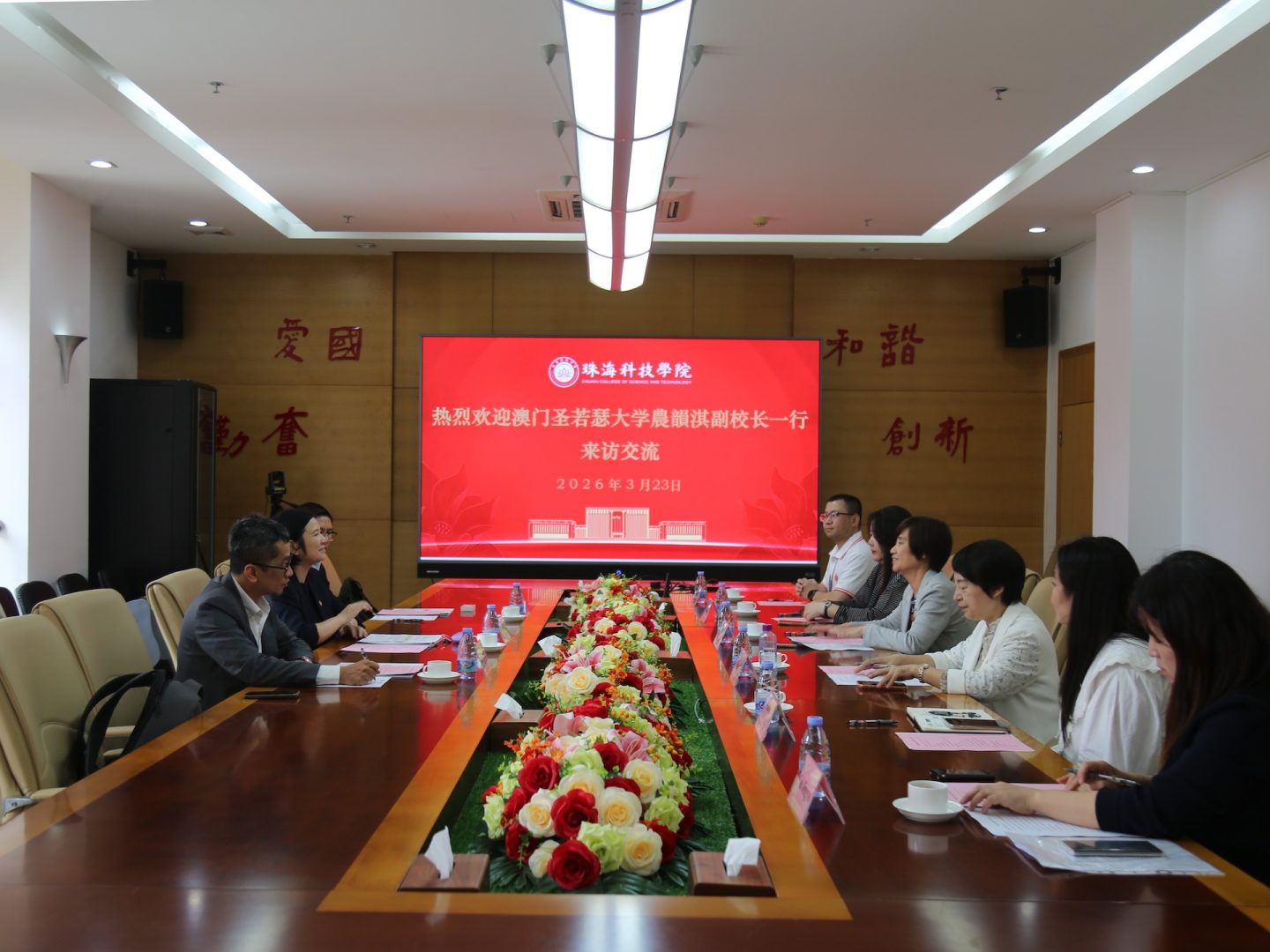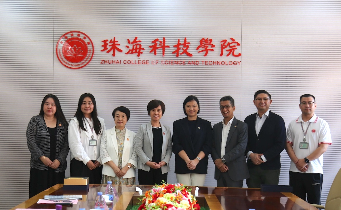 On March 23, a delegation from the University of Saint Joseph (USJ) led by Dr. Teresa Loong, Vice-Rector for Student Life, accompanied by Ben Lei, Head of the Domestic Recruitment Office (DSRO), and Prof. Thomas Lei, Chair of the Scientific Council from the Institute of Science and Environment (ISE), visited the Zhuhai College of Science and Technology (ZCST) for meetings and discussions on further collaborations.