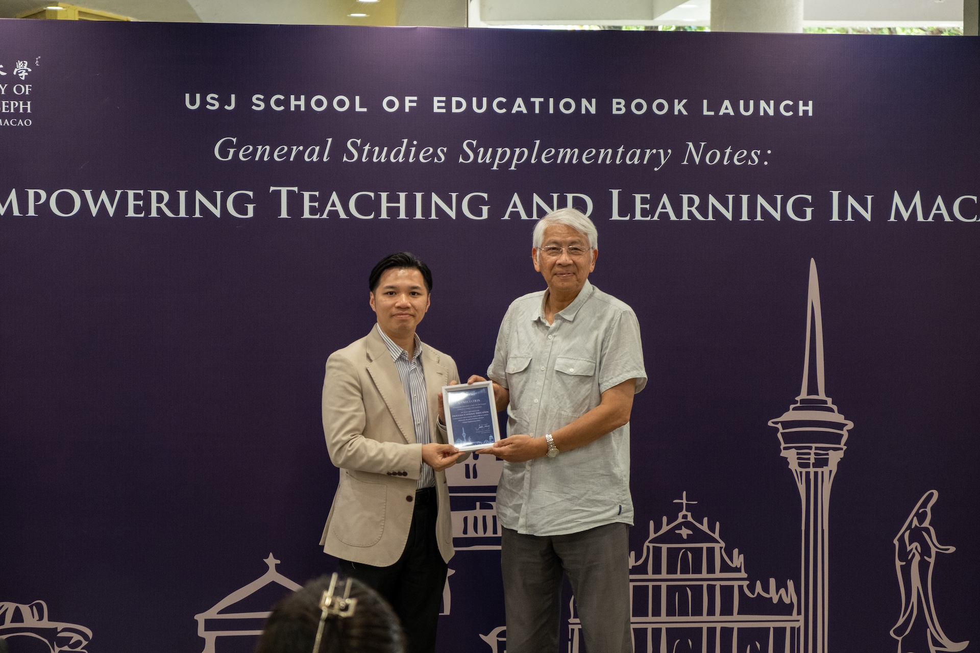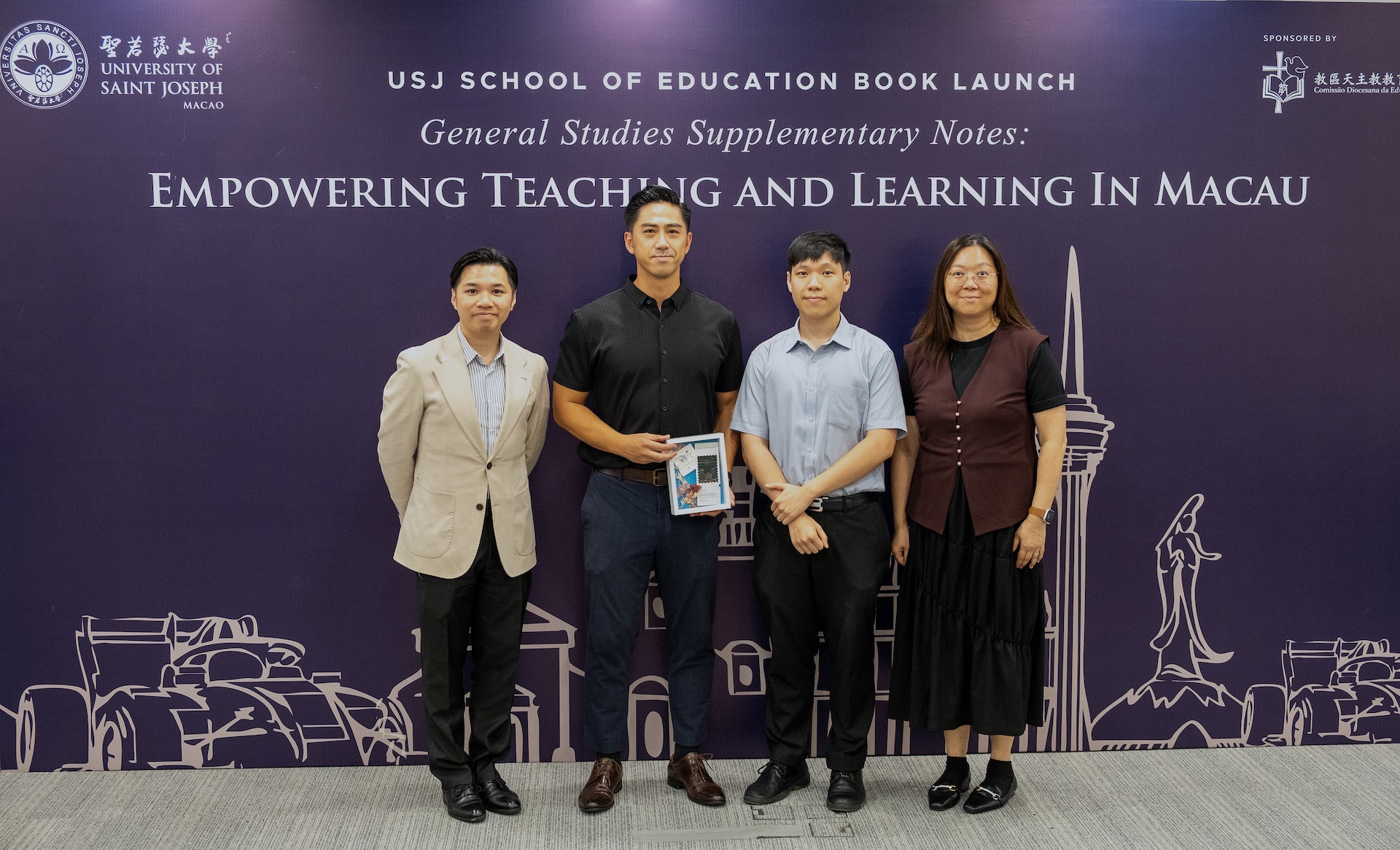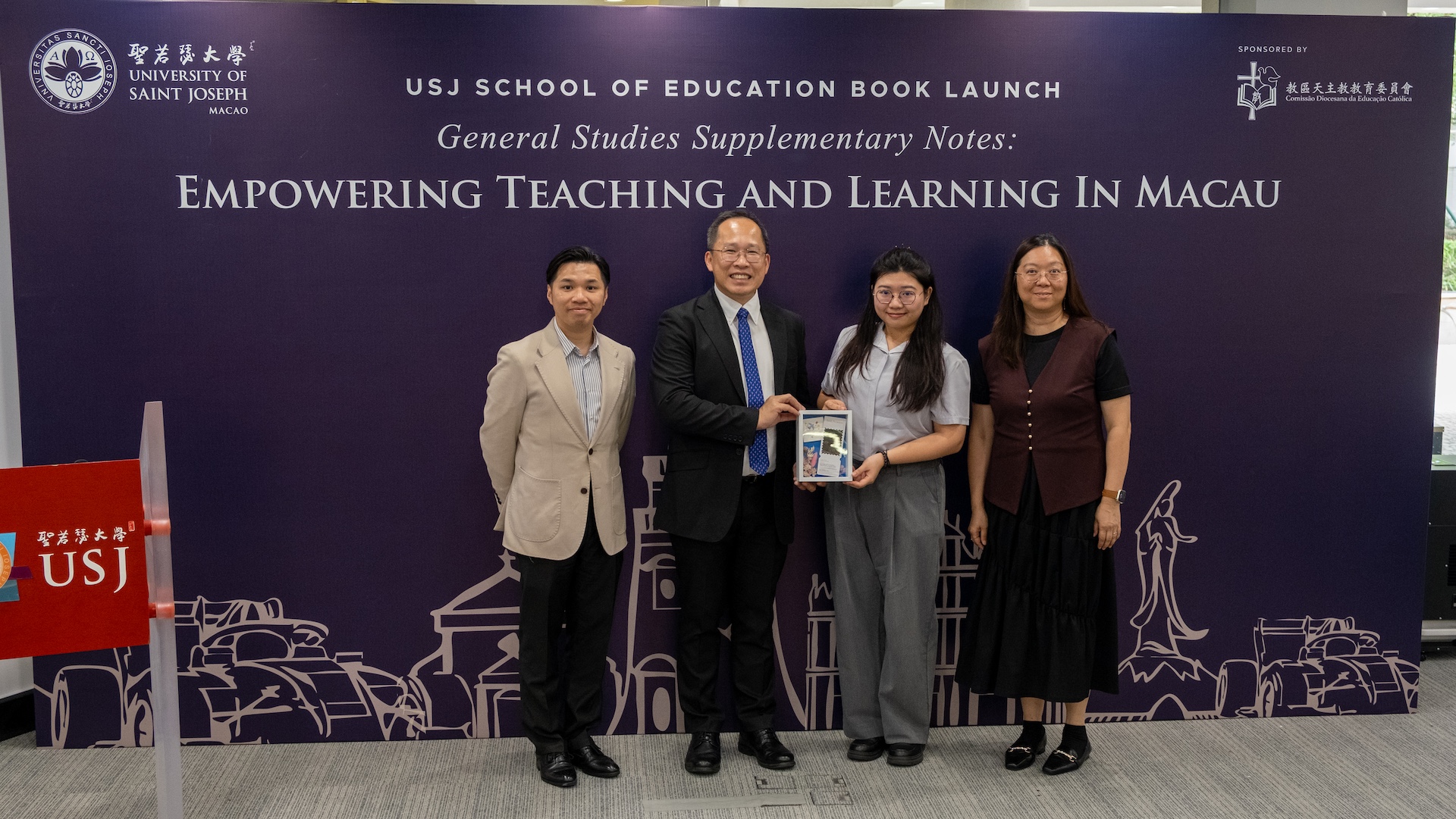 The project was supported by Bishop Stephen Lee Bun-Sang and funded by the Diocesan Catholic Education Commission (CDEC), with contributions from more than ten teacher-authors from Colégio Diocesano de São José (CDSJ), Colégio Diocesano de São José 5 (CDSJ5), and Santa Rosa de Lima English Secondary School. The launch was also attended by Dr. Zhang Shuguang, Vice-Rector of USJ; Dr. Stephen Chan, Office Director of the CDEC; Mr. Wong Kin Man, Principal of CDSJ5; Mr. Ng Teng Chio, Principal of CDSJ; and Ms. Alice Leong.