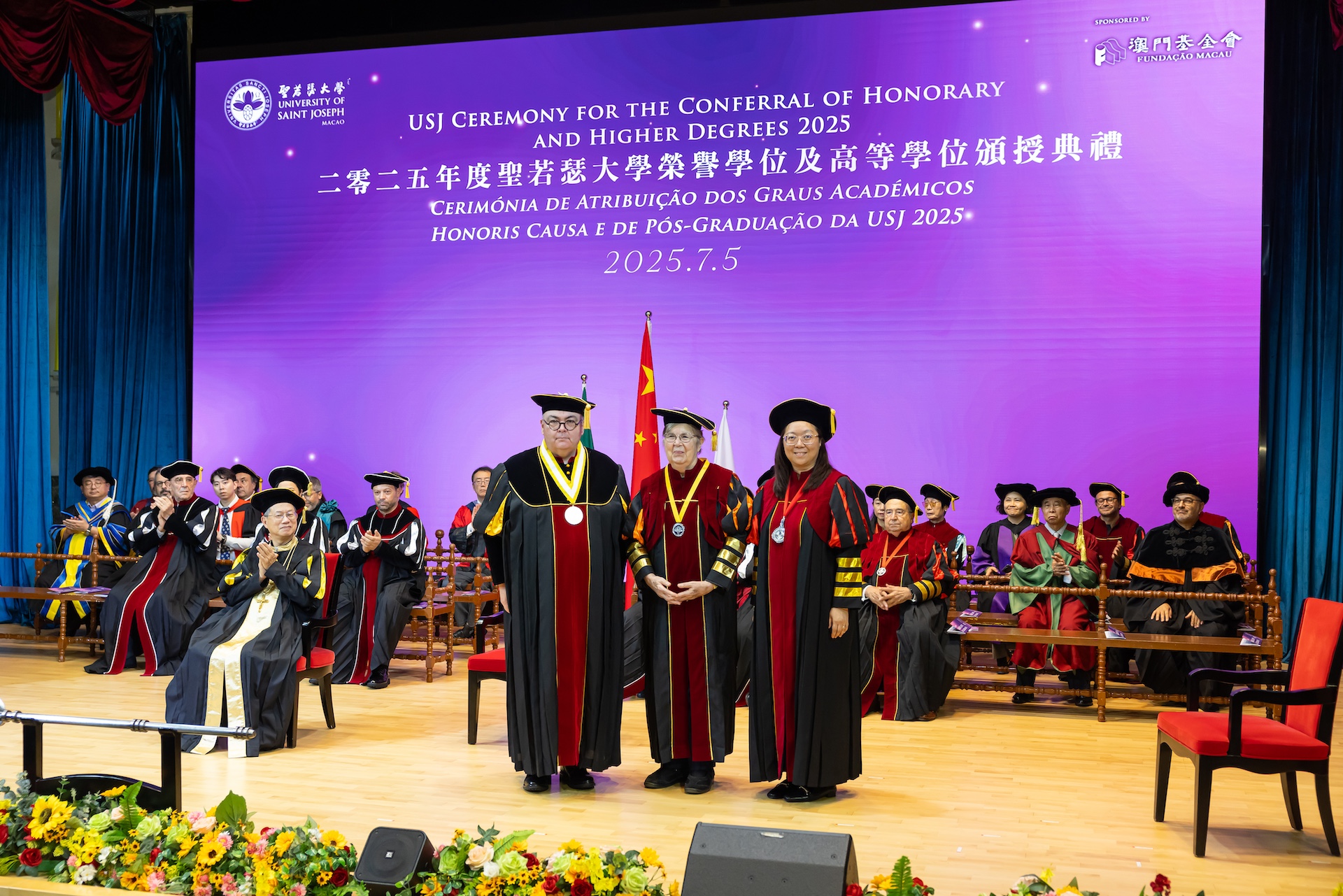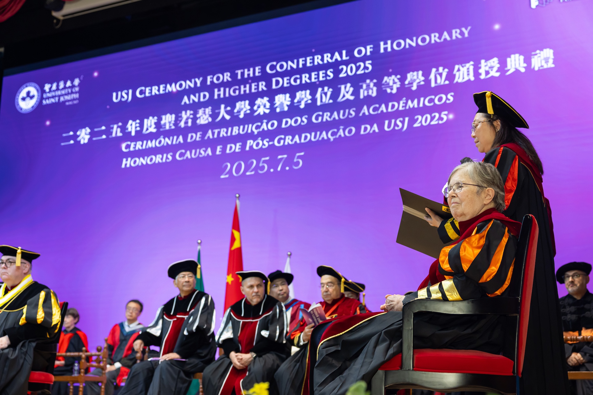A Universidade de São José (USJ) celebrou a Cerimónia de Atribuição dos Graus Académicos Honoris Causa e de Pós-Graduação de 2025 no dia 5 de Julho, comemorando os sucessos dos seus graduados de mestrado e doutoramento. A atribuição do grau de Doutor Honoris Causa em Educação à Professora Ruth Hayhoe, uma distinta académica cujas contribuições para a educação deixaram um profundo impacto em toda a Ásia, foi um dos momentos de destaque da cerimónia.