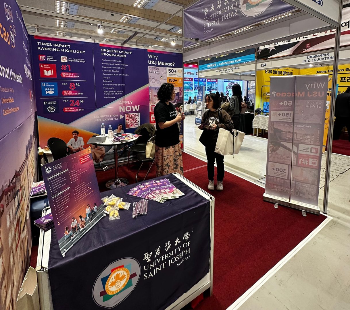 USJ’s participation contributed to enhancing the University’s visibility in South Korea and fostering connections with prospective students and their families. Supported by the Education Fund of the Macao Special Administrative Region, this initiative forms part of USJ’s ongoing commitment to internationalisation and to promoting Macao as a hub for quality higher education.