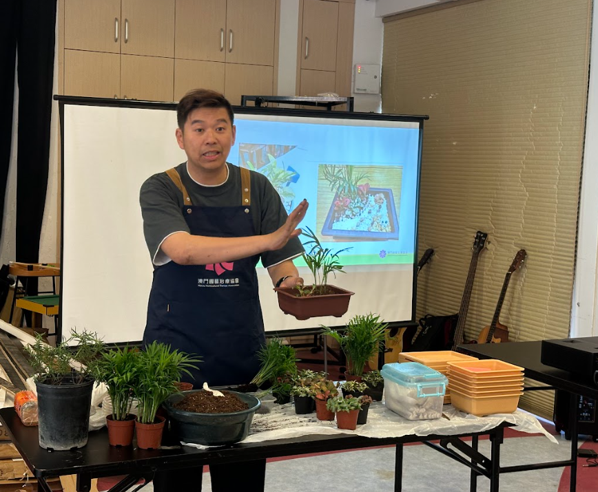 The horticultural therapy workshop of  “Nurturing Plants, Nurturing People” was held on March 16th at the Student Lounge. Under the guidance of therapists from the Macau Horticultural Therapy Association, participants were introduced to how to make use of horticultural therapy in promoting well-being. Through making herb bags and engaging in plant arrangements, participants could make use of their creativity and experience the amazing power of plants. Positive feedback was received from the participants, that they found the activities to be satisfying for their mind and spirit. Some also expressed that they seldom engaged in planting activities before, and found the sensory experiences in planting activities to be new to them.