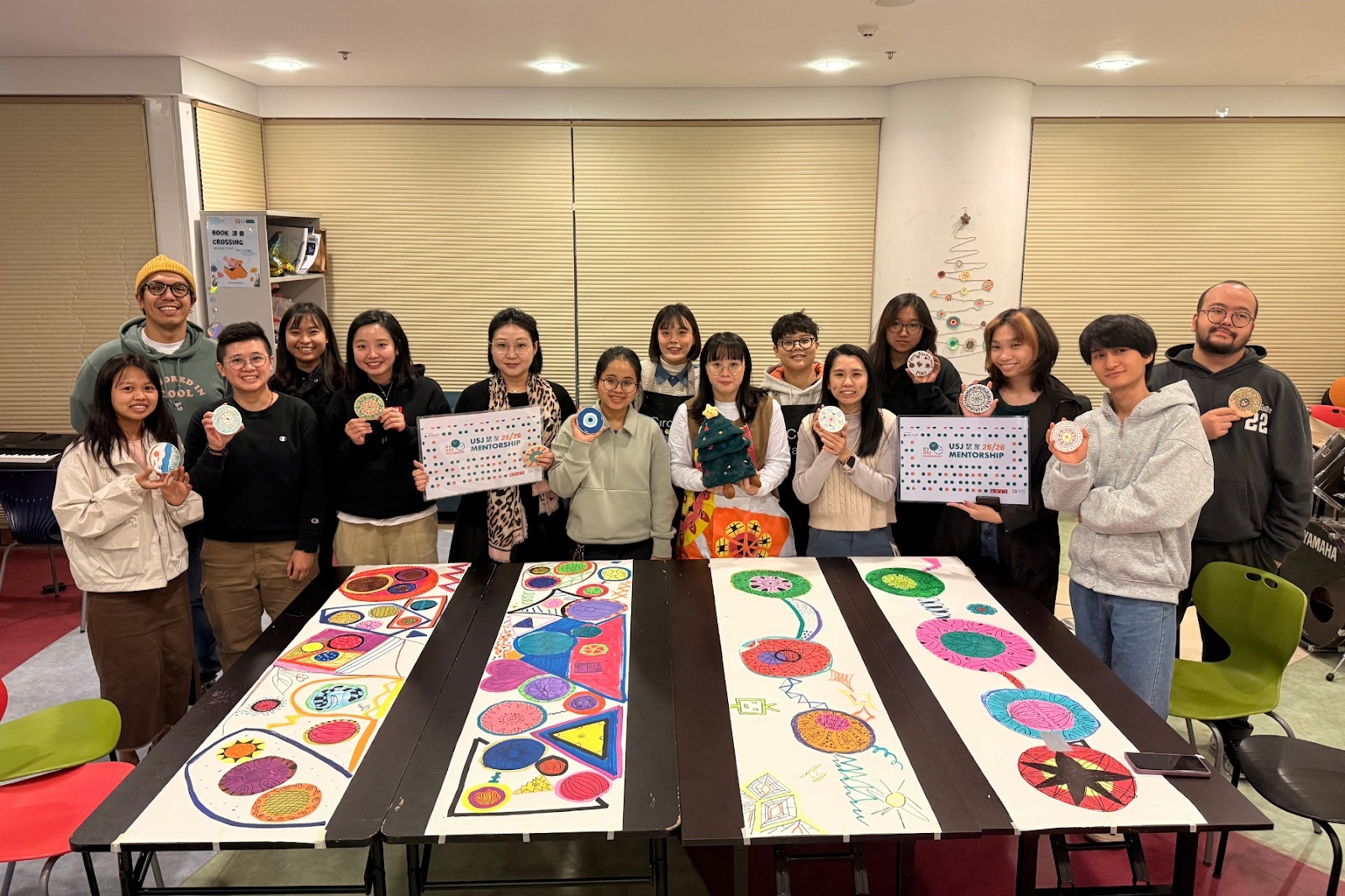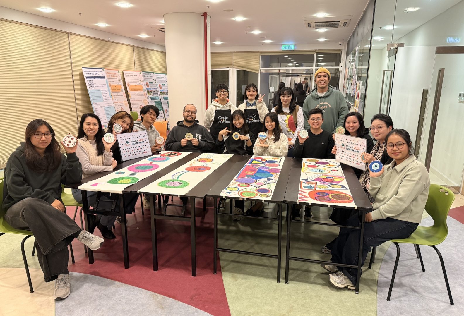 Led by Ms. Ivy Ieong, who also served as a mentor in the previous mentorship programme, the workshop provided a unique, hands-on platform for participants to collaborate on a shared “circle painting” artwork. This innovative approach served as a powerful tool to facilitate initial communication and establish rapport between mentors and their mentees. The session underscored the programme’s core objective of building strong, supportive relationships within the USJ community.