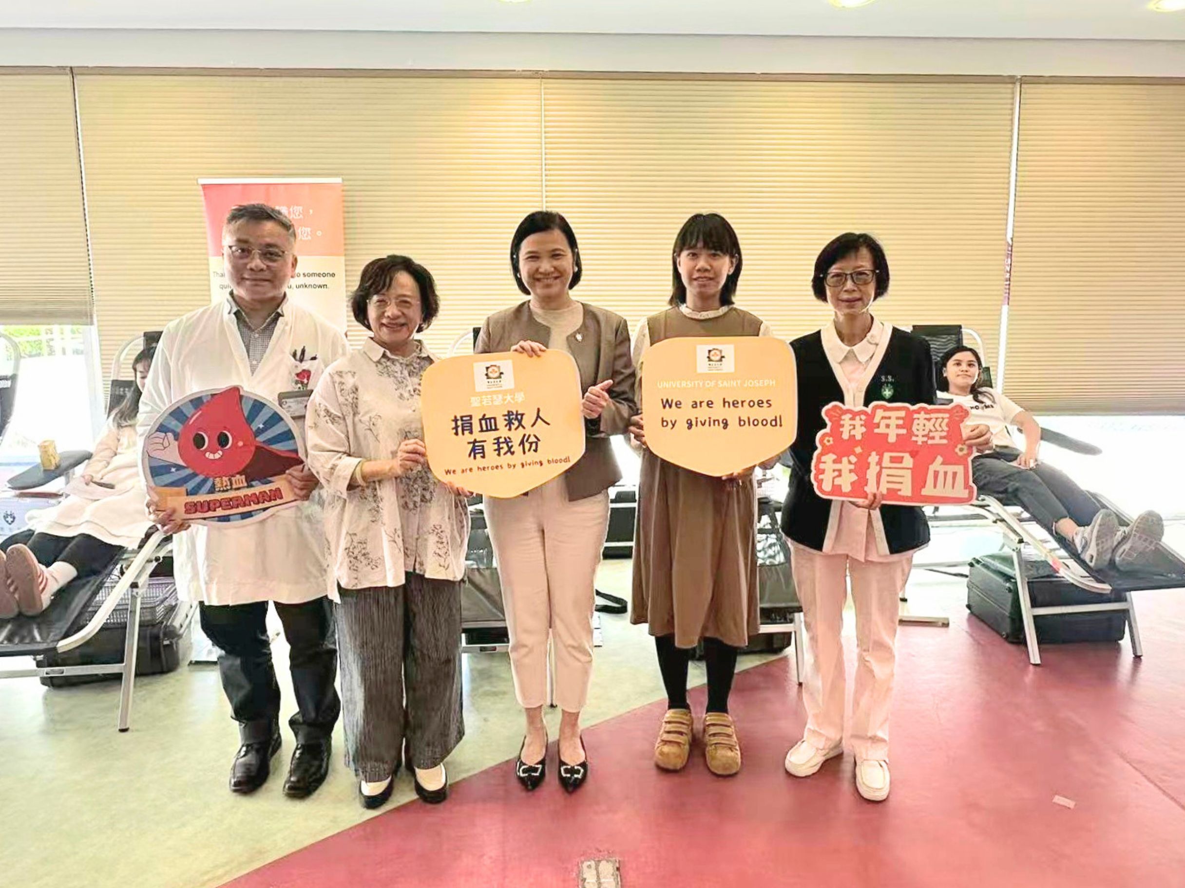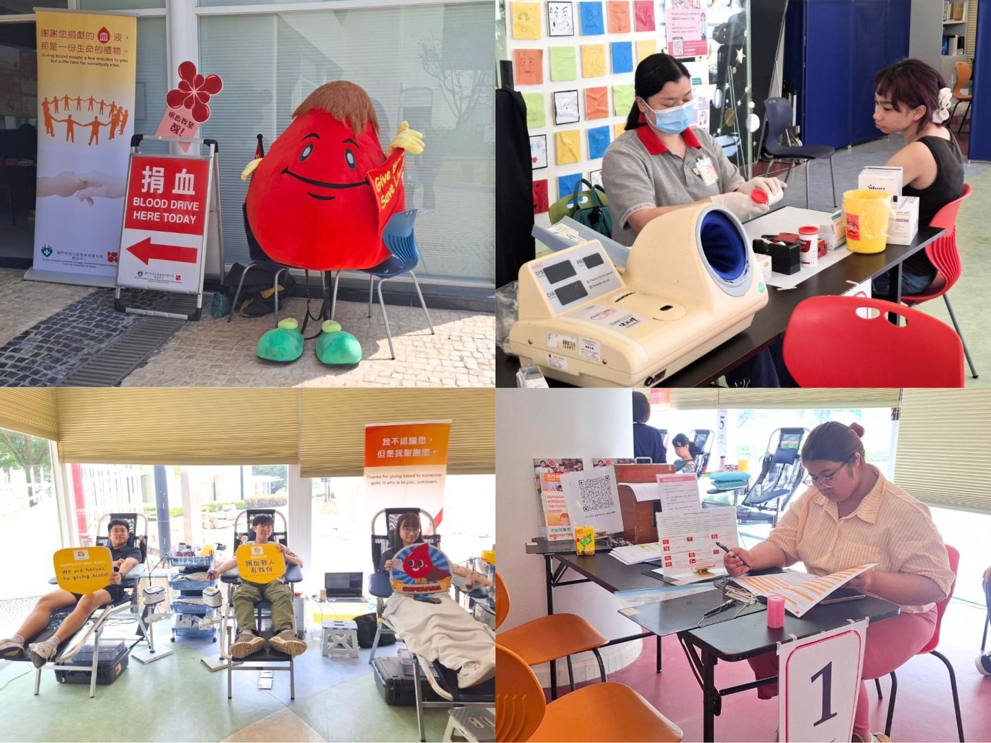 The annual “USJ Blood Drive” was jointly organised by the Macao Blood Transfusion Centre and the University of Saint Joseph at the USJ Ilha Verde Campus on the 25 March. The activity was aimed to strengthen the caring and serving spirit of the USJ community to the society, and promote the importance of donating blood. More than 30 students and staff members participated in this meaningful event.