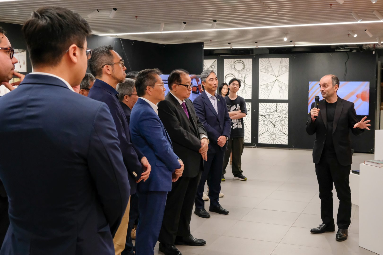 Attendees also included Ms. Libby Lei, Executive Director of the Macau Poster Design Association; Mr. Ng Ka Man, Deputy Chairman of the Macau Construction Machinery Engineering Association (APMCCM); Mr. Chu Hok Hei, Deputy Secretary-General of the Macau Construction Machinery Engineering Association (APMCCM); Ms. Zoey Zheng, Oil Painting Artist and UN Volunteer with the Communications Team at the United Nations University Institute; Ms. Mani Fok, Supervisory Committee Chairperson of the Macao Low Carbon Development Association; Ms. Ronnie Chou, Chairman of the Macau Overseas Design Student Association (MODSA); and various faculty members and students of the University of Saint Joseph.