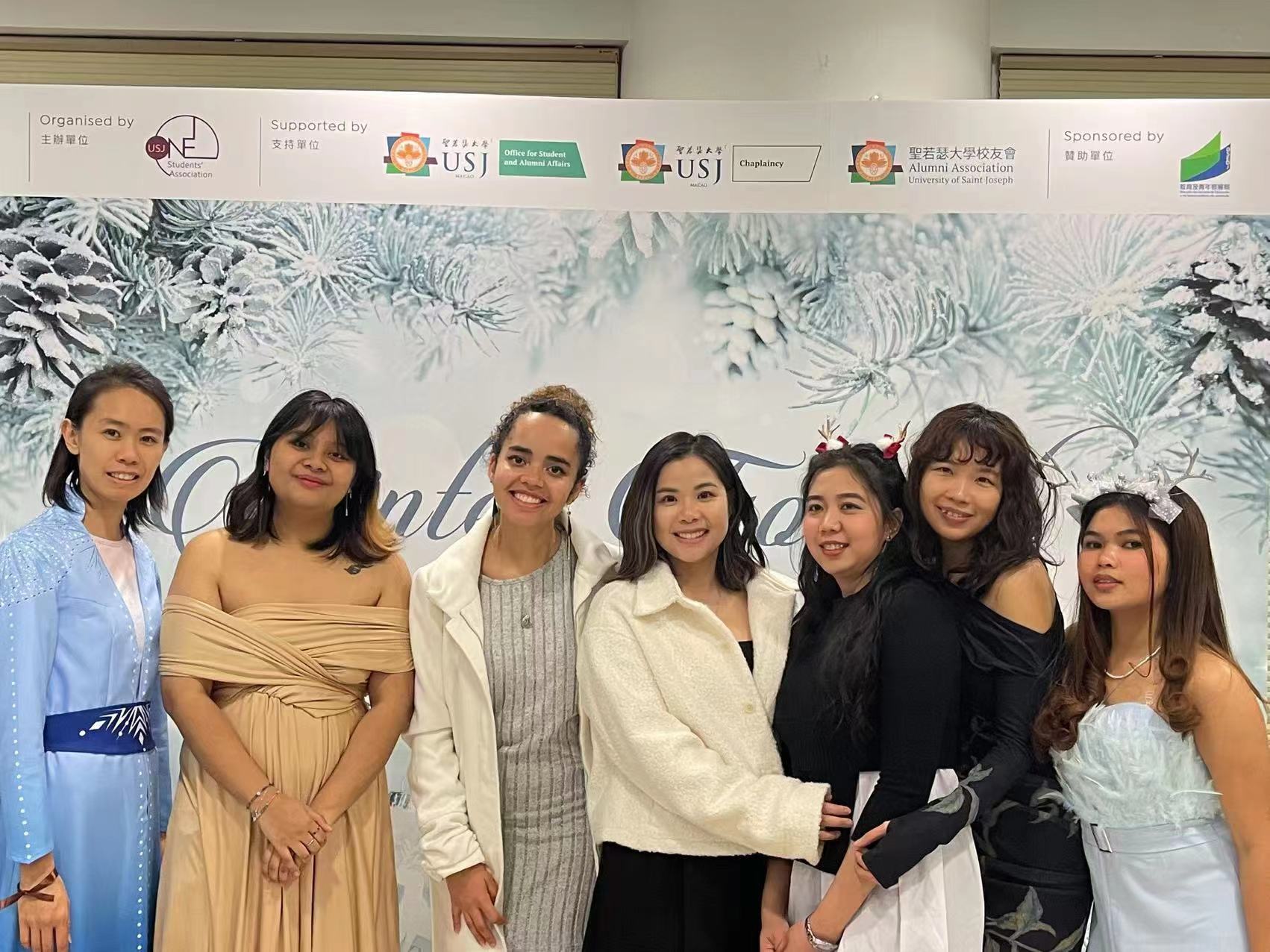 The USJ Pre-Christmas Party 2024 – Winter Formal took place on 13 December, organized by the USJ Student Association (USJSA) and sponsored by the Education and Youth Development Bureau. The event featured party snacks and beverages, a cultural exhibition area, musical performances, best-dressed award, and a gift exchange segment, creating a lively atmosphere.
