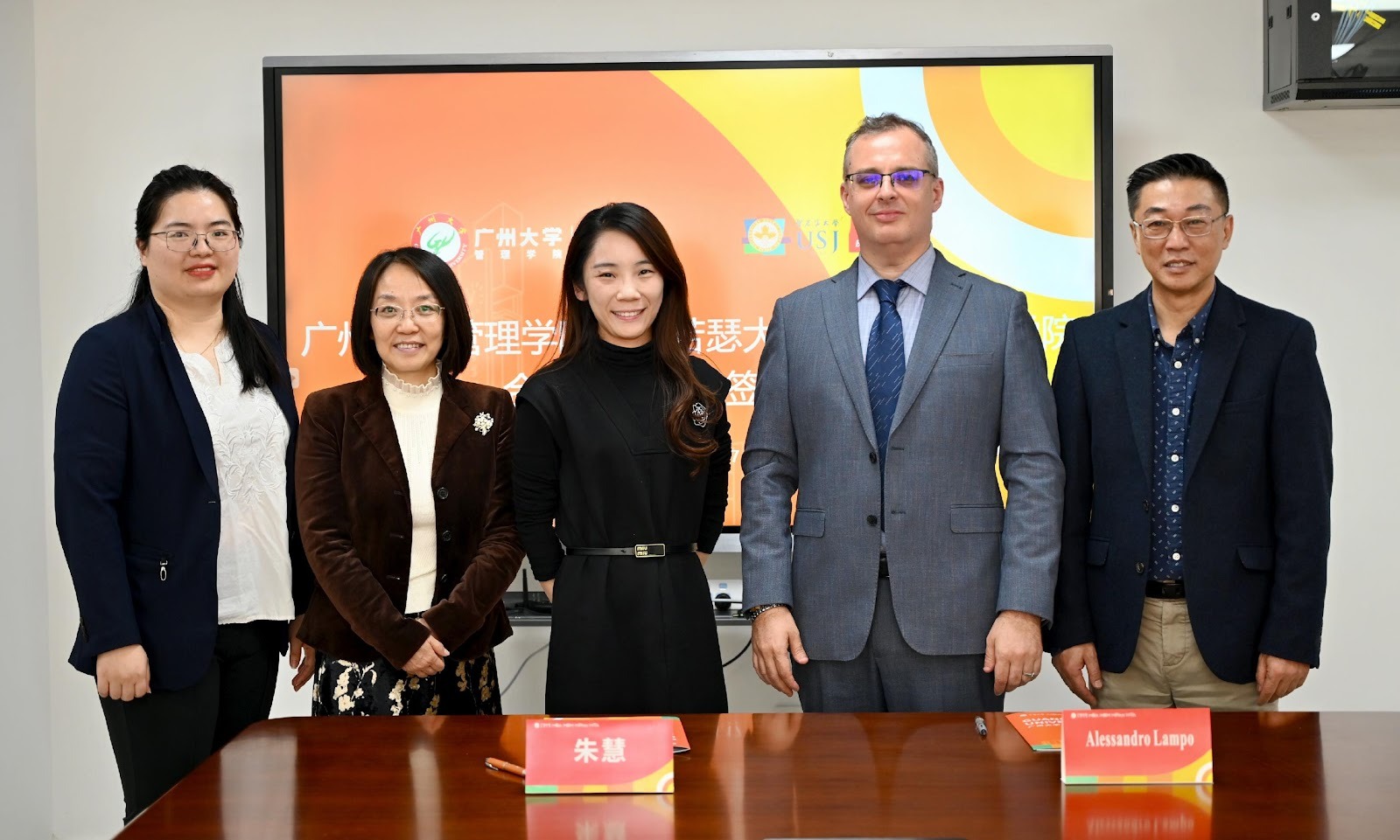 The agreement was formalized in the presence of a USJ delegation led by Professor Alessandro Lampo, Head of the Department of Business Studies, and Mr. David Yang, Head of the Mainland Cooperation Office. Representing Guangzhou University were Professor Zhu Hui, Deputy Dean, and Prof. Jiang Caifen, who welcomed the USJ delegation and endorsed the shared vision for the partnership.