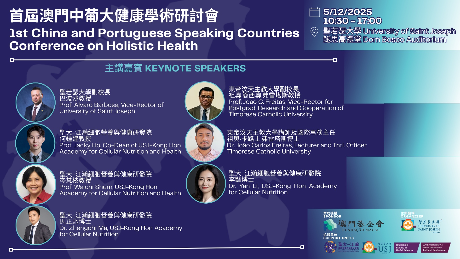「首屆澳門中葡大健康學術研討會」於2025年12月5日早上10時30至下午5時在聖若瑟大學(青洲校舍)鮑思高禮堂舉行。