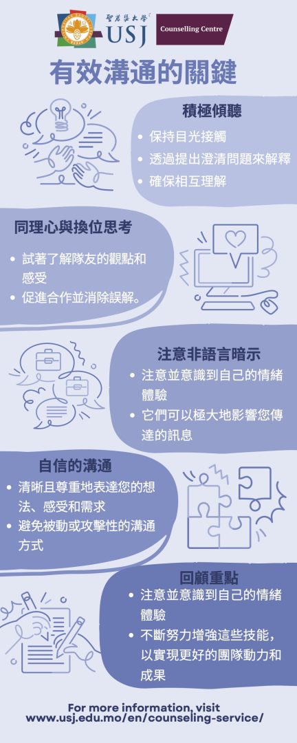 以上信息僅供一般參考。 它不旨在取代臨床治療,也不用作解決特定問題的專業建議。聖若瑟大學心理輔導中心不對因訪問和/或使用信息直接或間接造成的任何損失負責