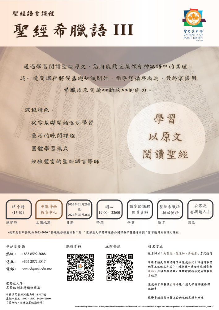 (申請限期: [希臘語III] 由即日起至2026年01月15日 ; [希伯來語III] 由即日起至2026年01月19日 )