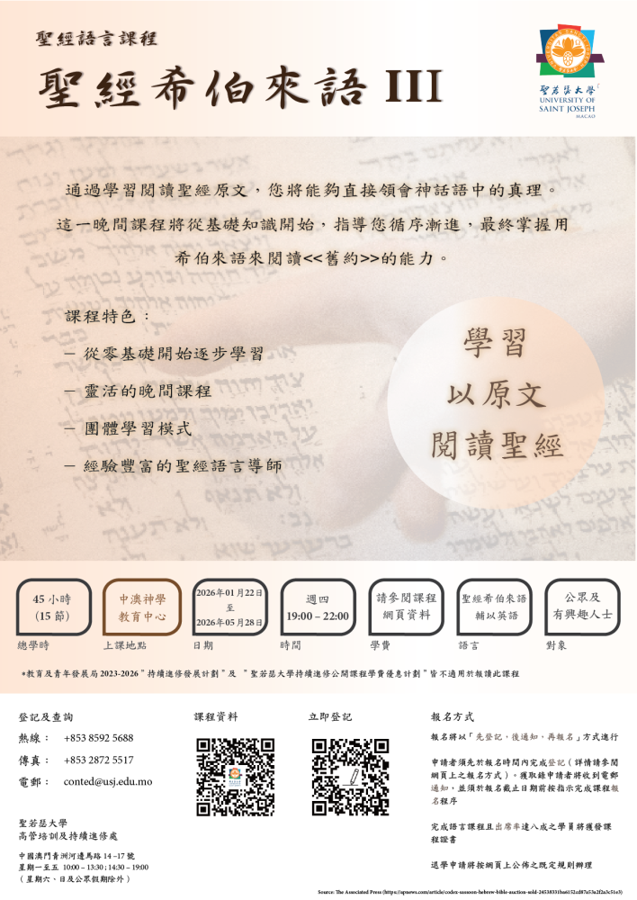 聖若瑟大學很高興地宣布推出一項新的培訓課程,旨在幫助您閱讀聖經原文。
