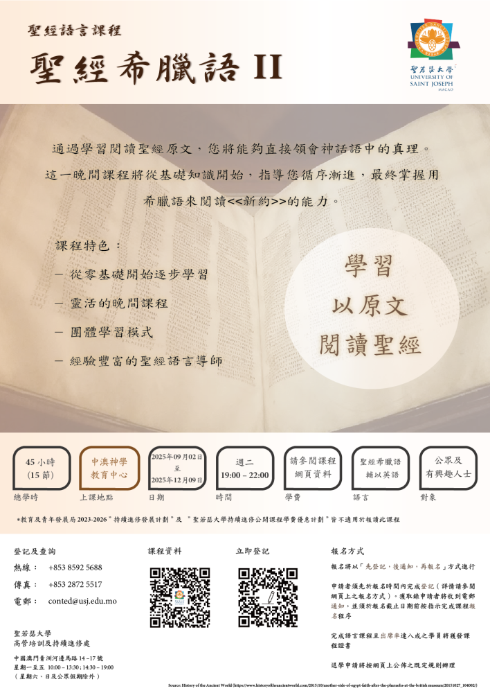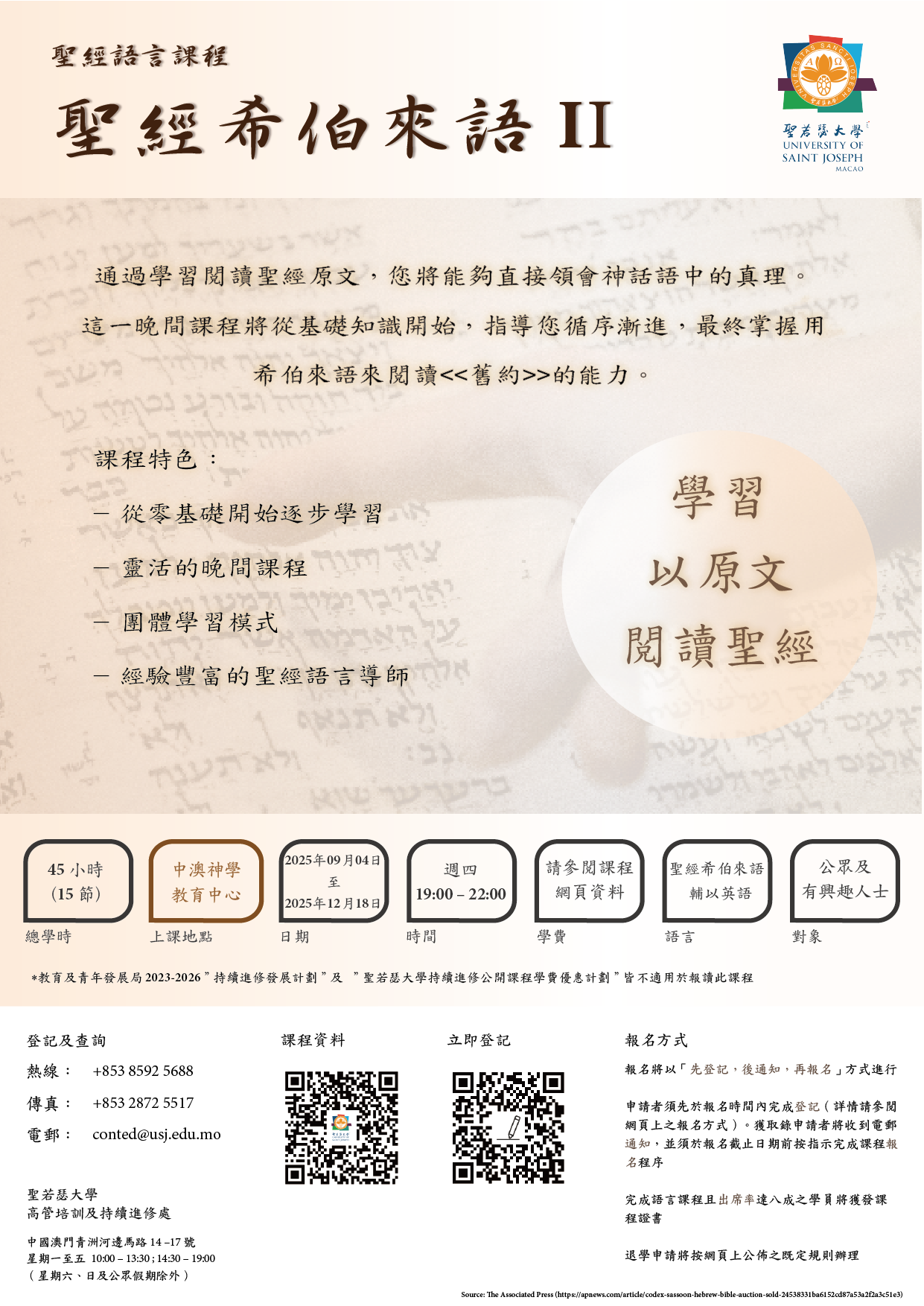 聖若瑟大學很高興地宣布推出一項新的培訓課程,旨在幫助您閱讀聖經原文。