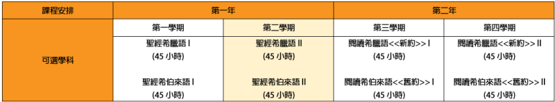 可選學科 聖經希臘語 II 聖經希伯來語 II