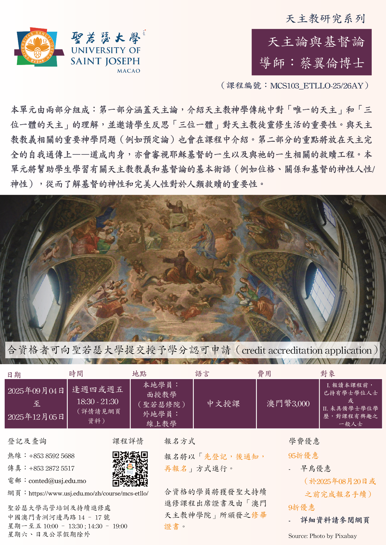 - 「天主教研究系列」課程詳情,請按此瀏覽。