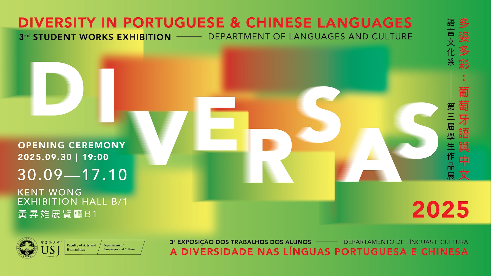 聖若瑟大學人文學院語言及文化系謹定於二零二五年九月三十日至十月十七日,在Kent Wong 畫廊地下層-聖若瑟大學青洲校區舉辦第三屆葡中翻譯研究及葡萄牙語言課程學生作品展,誠邀各界蒞臨指導。