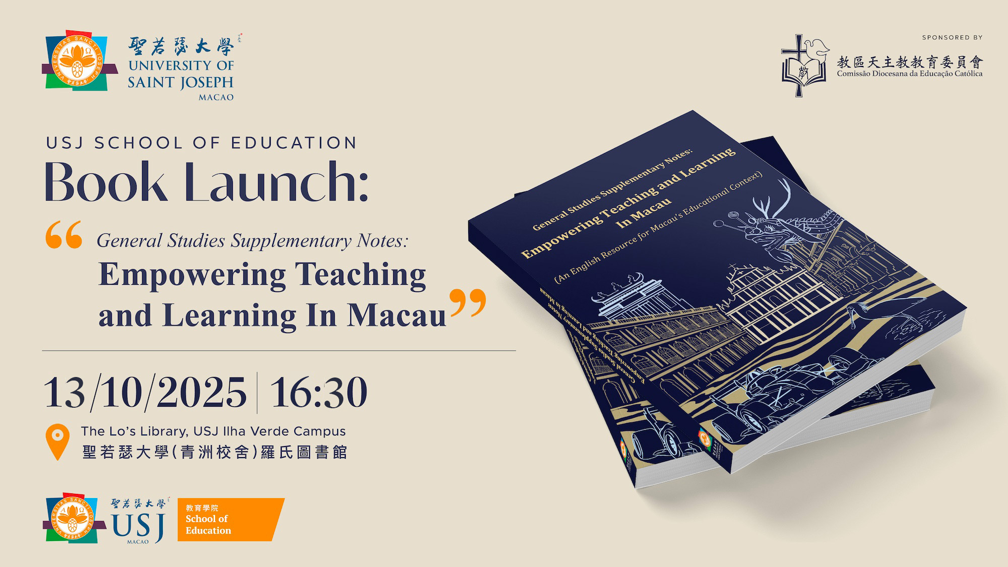 《常識補充筆記:賦能澳門教與學》(General Studies Supplementary Notes: Empowering Teaching and Learning in Macau)一書發佈儀式將於10月13日下午5時在聖若瑟大學羅氏圖書館舉行。