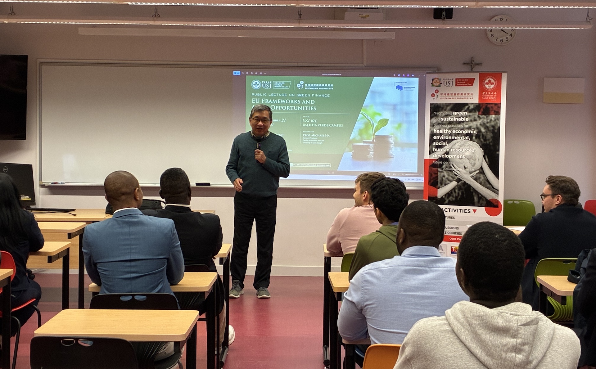由澳門聖若瑟大學 (聖大 ) 商學及法律學院可持續發展商業研究(Sustainable Business Lab)所主辦的《綠色金融公開講座:歐盟框架與亞洲機遇》(Public Lecture on Green Finance: EU Frameworks and Asian Opportunities)於2025年11月21日假聖大青洲校舍舉行。活動聚焦可持續金融趨勢,深入解析歐盟最新可持續發展報告規範對企業營運與策略的影響,同時探討澳門綠色債券市場的發展現狀,分析其面臨的機遇、挑戰及解決方案,並透過實例研討促進對可持續發展的深度對話。