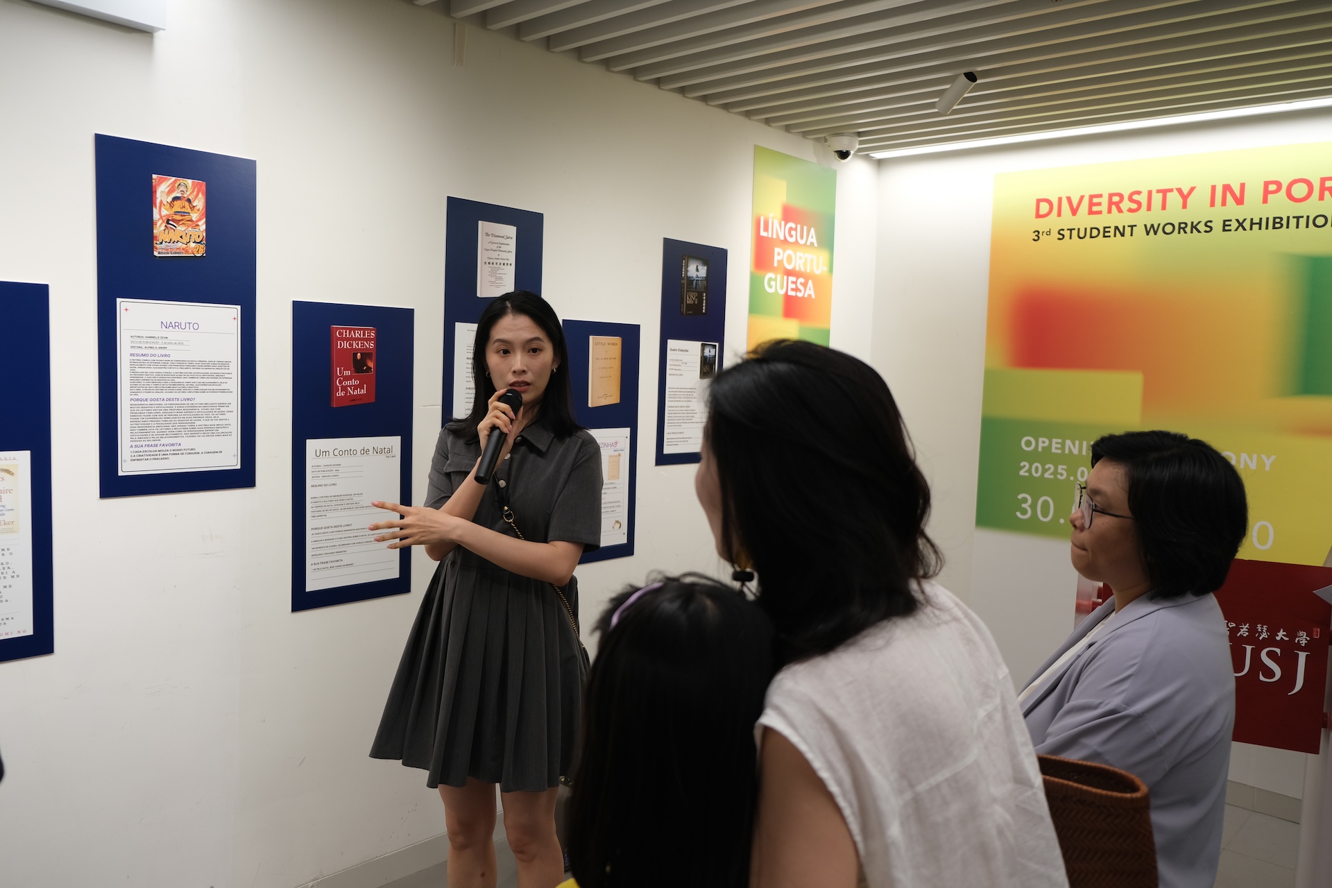 由聖若瑟大學人文學院語言及文化系攜手建築及設計系聯合籌辦的第三屆「多姿多彩——葡萄牙語與中文」 – 葡中翻譯課程及通用葡語課程學生作品展與星期二,9月30日,在聖若瑟大學隆重開幕。澳門教育及青年發展局學生廳職務主管洪慧敏、東方葡萄牙學會主席Patrícia N. Quaresma等嘉賓出席了展覽的開幕儀式。